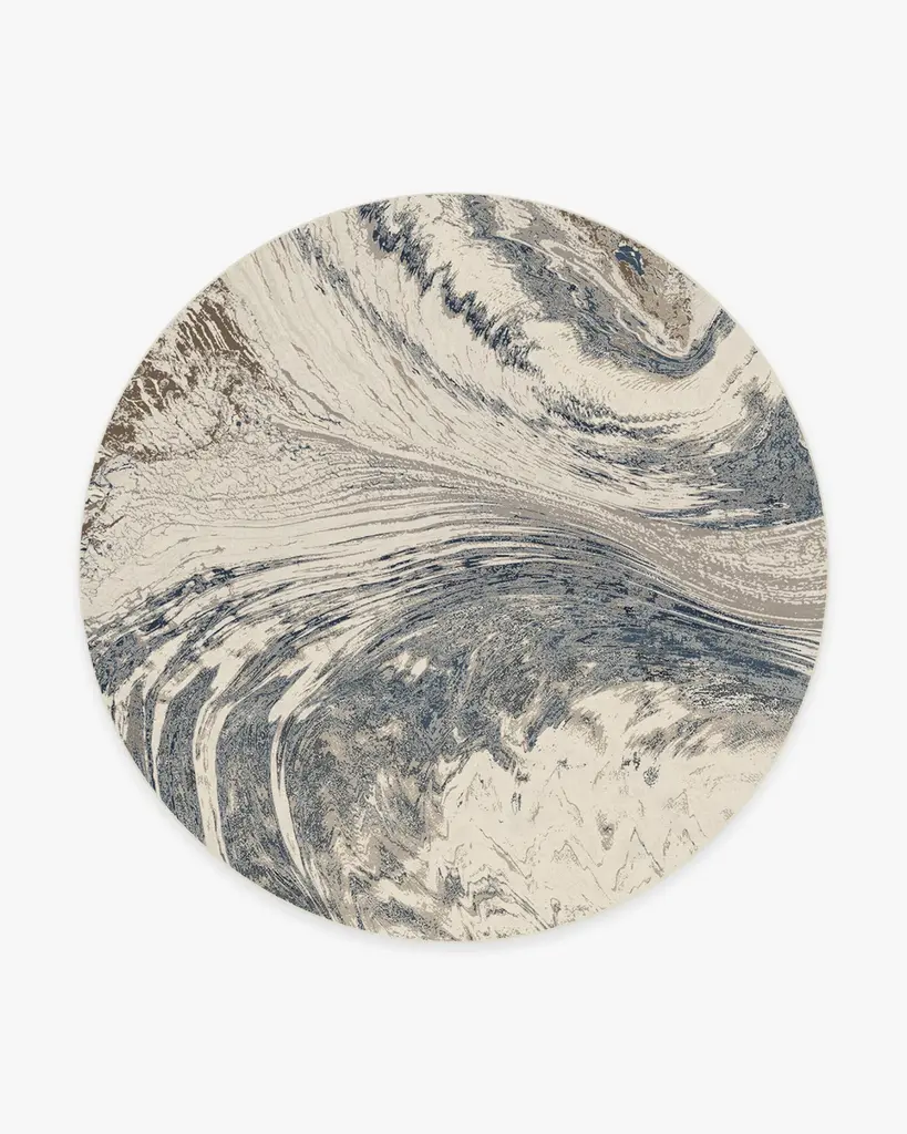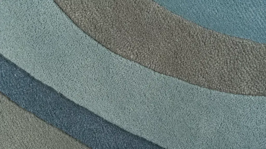 A trace, like a wave that unfolds and deforms towards the outside of the rug. Each wave is formed by a different color, a slightly varying height, and a thicker or thinner thread.