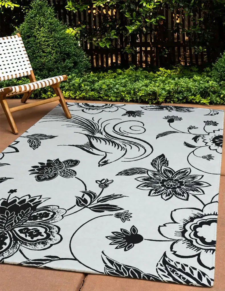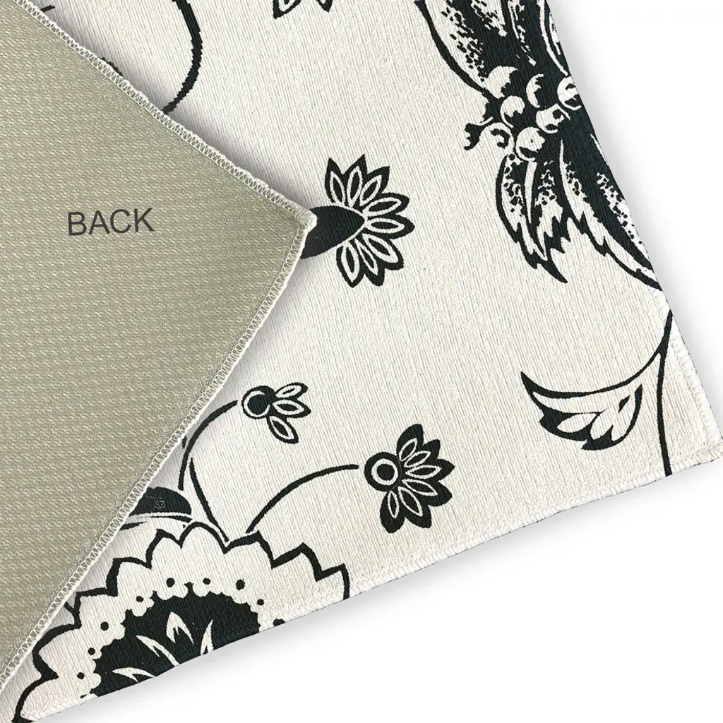 Add a floral touch to enhance your home decor with a Traditional Bird Floral Indoor/outdoor Rug from our Botanical Blooms Collection. Everyone will delight in the space defining design brought to your porch, patio, kitchen, or bathroom by this area rug. The artistic and colorful design is printed on a soft polyester base with a skid resistant backing, making it a perfect way to add color, flare and personality to any indoor or outdoor space. To clean, use a mild soap and lay flat to dry.