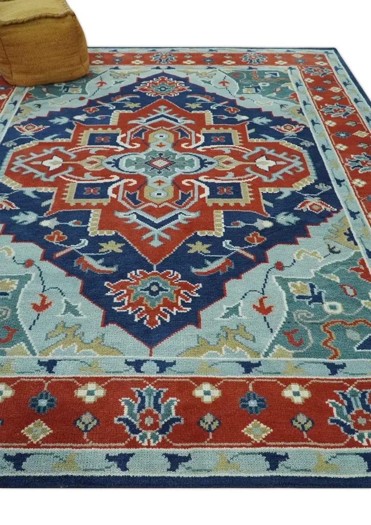 Expertly hand-knotted with high-quality wool, this Antique Floral Traditional Heriz rug features exquisite floral designs in rich shades of brown, blue, and gray. With its traditional Heriz style and durable construction, this multi-sized area rug is a timeless and elegant addition to any room. Hand-Knotted Made with Wool Made to Order in 30-45 Days Color : Brown, Blue and Gray This specific rug is made in India, in the city of Bhadohi. Bhadohi is one of the biggest rug manufacturing cities. Carpet weaving in the region dates back to the 16th century during the reign of Akbar. The skilled artisans of Bhadohi have been carrying the tradition of rug-making for centuries. USERS GUIDE Avoid prolonged moisture Vacuum regularly and/or shake to remove dust Do not pull any loose threads. Use scissors to simply cut the ends Blot spills immediately with a white cloth. Harsh chemicals may damage or fade the rug Use rug protectors under heavy furniture