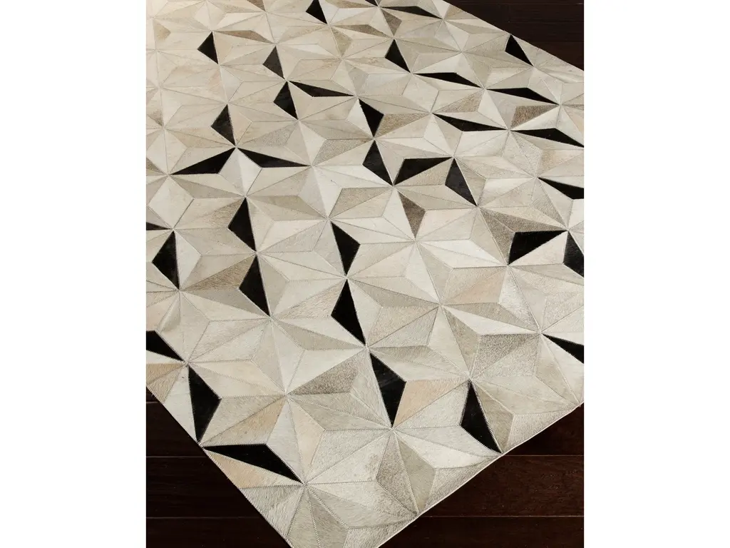 Carefully hand stitched from beautiful natural hide in a bold graphic pattern, Surya's Trail rug is equal parts rustic and refined.