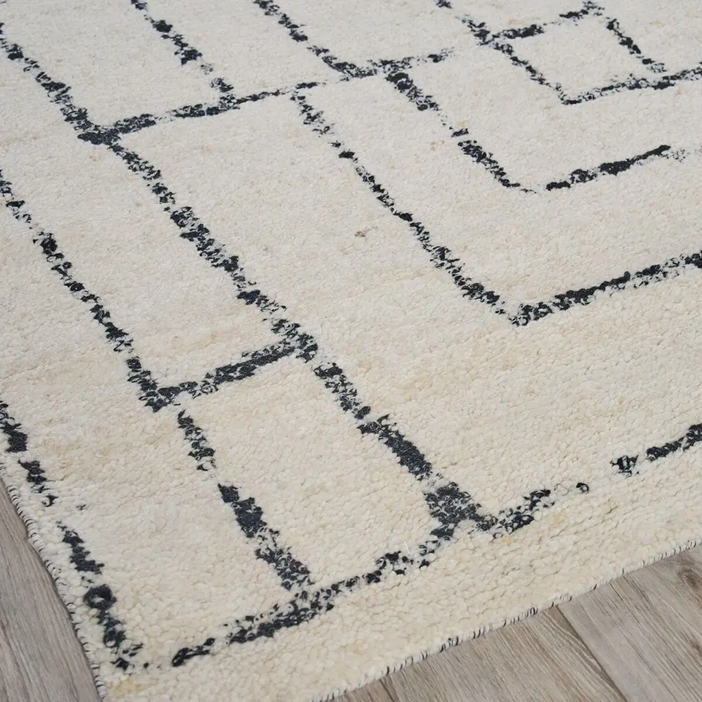 These large-scale Moroccan or Bohemian inspired designs of 100% wool are bold, exotic patterns. The heathered colorations are offset by softer neutral shades and contrasting accents. Large geometric shapes create rich and dynamic textures, an eclectic addition to any space with ultimate comfort underfoot.