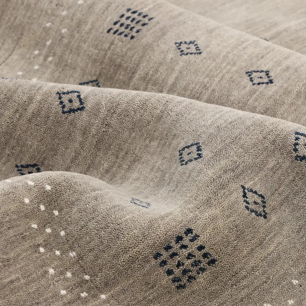 This 3' x 5' Transitional Wool Rug offers a blend of natural materials and classic design suitable for various home aesthetics. Crafted with an emphasis on durability and comfort, this area rug is a functional and stylistic addition to any room. The rug is constructed from a premium blend of 80% wool and 20% cotton. Wool provides natural resilience, a soft feel underfoot, and inherent stain resistance, making it an excellent choice for high-traffic areas. The inclusion of cotton in the blend adds strength and helps maintain the rug's structure and shape over time. This rug is proudly sourced from India, a region known for its heritage in textile craftsmanship. The provided image showcases a rug in a rich blue hue, featuring a refined geometric pattern. This design includes scattered small diamond shapes and two distinct linear bands of varied geometric motifs, positioned towards the top and bottom edges. A prominent central square motif further enhances the rug's visual interest. All patterns are rendered in a lighter, contrasting shade. Please note: While the image displays a blue rug, this particular product is specified as Brown. We recommend confirming the exact color for your purchase. Its transitional style effectively bridges traditional and contemporary decor. Measuring 3 feet by 5 feet, this versatile rug is ideal for defining smaller spaces or adding a layer of warmth and texture. It can be placed in an entryway, alongside a bed, under a coffee table, or as an accent piece in a living room, bedroom, or home office. Its dimensions make it suitable for areas where a full-size rug might be too large, yet still provides significant visual impact. To maintain the rug's appearance and longevity, regular vacuuming is recommended. For spills, spot cleaning with a mild cleaner is advised. The natural properties of wool make it easy to care for and resistant to everyday wear. Consider using a rug pad underneath to prevent slipping and to provide additional cushioning and protection for both the rug and your flooring.