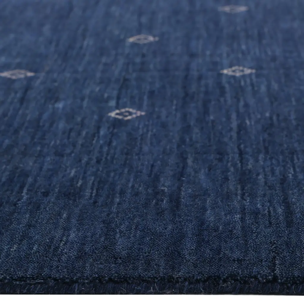 This 3' x 5' Transitional Wool Rug offers a blend of natural materials and classic design suitable for various home aesthetics. Crafted with an emphasis on durability and comfort, this area rug is a functional and stylistic addition to any room. The rug is constructed from a premium blend of 80% wool and 20% cotton. Wool provides natural resilience, a soft feel underfoot, and inherent stain resistance, making it an excellent choice for high-traffic areas. The inclusion of cotton in the blend adds strength and helps maintain the rug's structure and shape over time. This rug is proudly sourced from India, a region known for its heritage in textile craftsmanship. The provided image showcases a rug in a rich blue hue, featuring a refined geometric pattern. This design includes scattered small diamond shapes and two distinct linear bands of varied geometric motifs, positioned towards the top and bottom edges. A prominent central square motif further enhances the rug's visual interest. All patterns are rendered in a lighter, contrasting shade. Please note: While the image displays a blue rug, this particular product is specified as Brown. We recommend confirming the exact color for your purchase. Its transitional style effectively bridges traditional and contemporary decor. Measuring 3 feet by 5 feet, this versatile rug is ideal for defining smaller spaces or adding a layer of warmth and texture. It can be placed in an entryway, alongside a bed, under a coffee table, or as an accent piece in a living room, bedroom, or home office. Its dimensions make it suitable for areas where a full-size rug might be too large, yet still provides significant visual impact. To maintain the rug's appearance and longevity, regular vacuuming is recommended. For spills, spot cleaning with a mild cleaner is advised. The natural properties of wool make it easy to care for and resistant to everyday wear. Consider using a rug pad underneath to prevent slipping and to provide additional cushioning and protection for both the rug and your flooring.