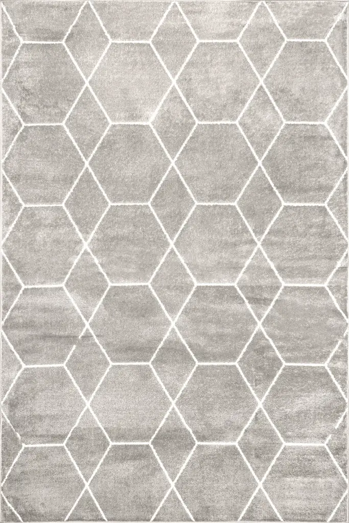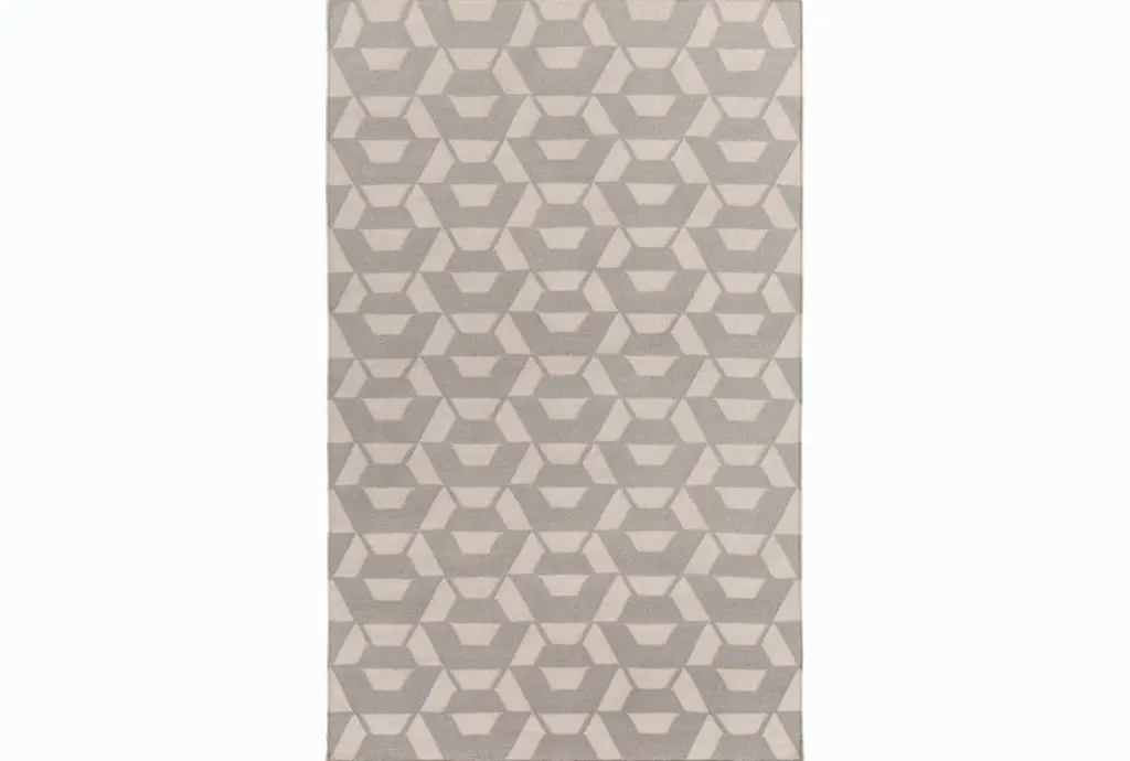 Trapeza Hand Tufted Modern Geometric Silk Rug In Taupe Grey Colour By Hands