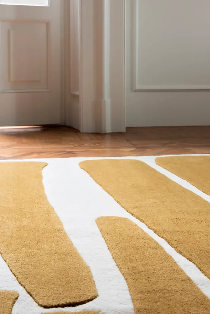 Material: WoolKnot Density: 60 knots/inch²Pile Height: 4 - 8mmTechnique: Hand-knottedCustom sizes and colors on requestThe word " tratto" in Italian describes the single or repeated act of producing lines and brushstrokes while drawing, sketching, or painting, as well as engraving, carving, and printing on different surfaces. The various signs, depth, thickness, brightness, frequency, energy and uniformity are the hand-knotted collection's distinctive characteristics, distinguished by multiple non-standard shapes, experimentation with perforated surfaces and bright Colors.Magenta's curved and irregular shape emphasizes its dynamism, transforming it into the perfect binder between elements of an interior. Magenta is composed of 100% wool, has a knot density of 60 knots/inch², and a pile height ranging from 4 to 8 millimeters.