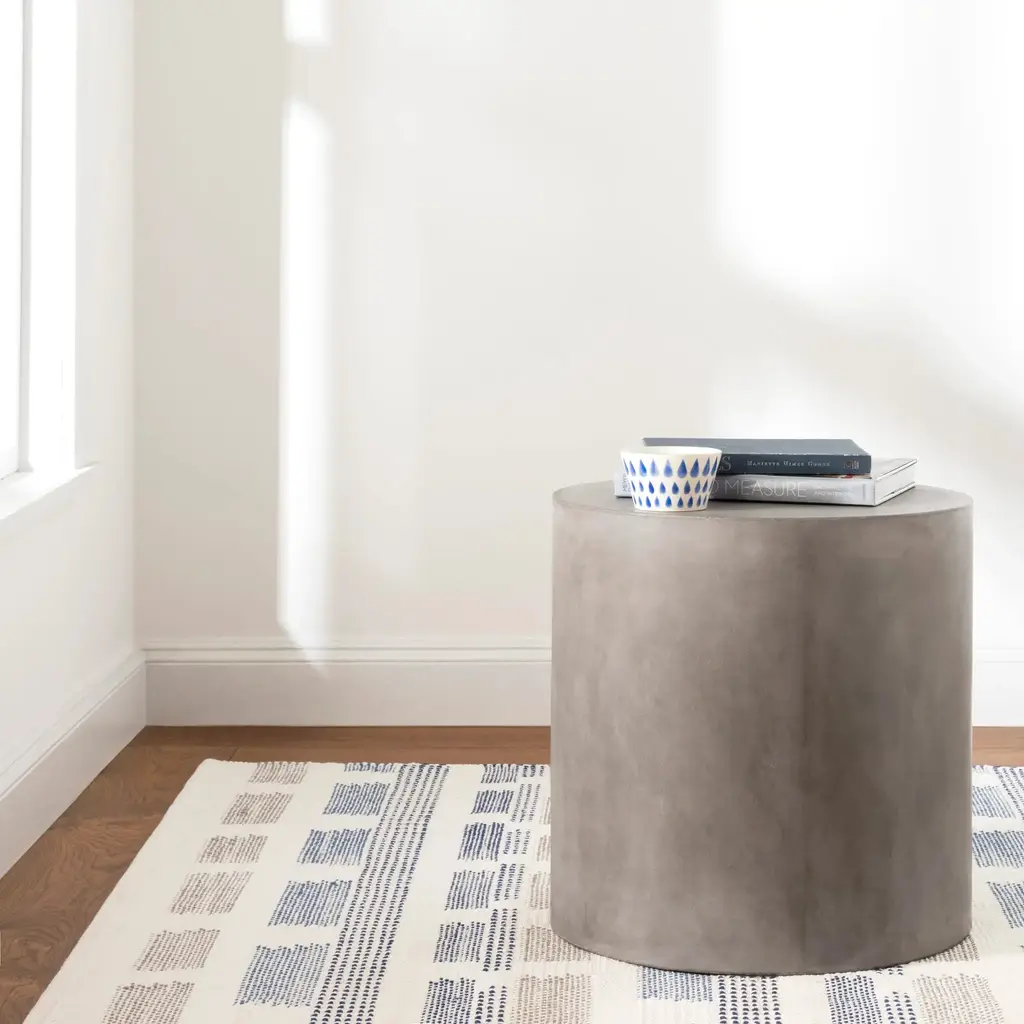 Tonal dotted strips of color on a white ground randomly break at intervals in this witty cotton flatweave rug design. From the studio of Kit Kemp, co-owner and Creative Director for Firmdale Hotels, whose adventurous, imaginative and revolutionary style mixes whimsy and fearlessness. Evoking the imprint of muddy bicycle tires on a sidewalk, the subtle variations of color and apparent chance patterning creates breathing space and freshness for a floor.