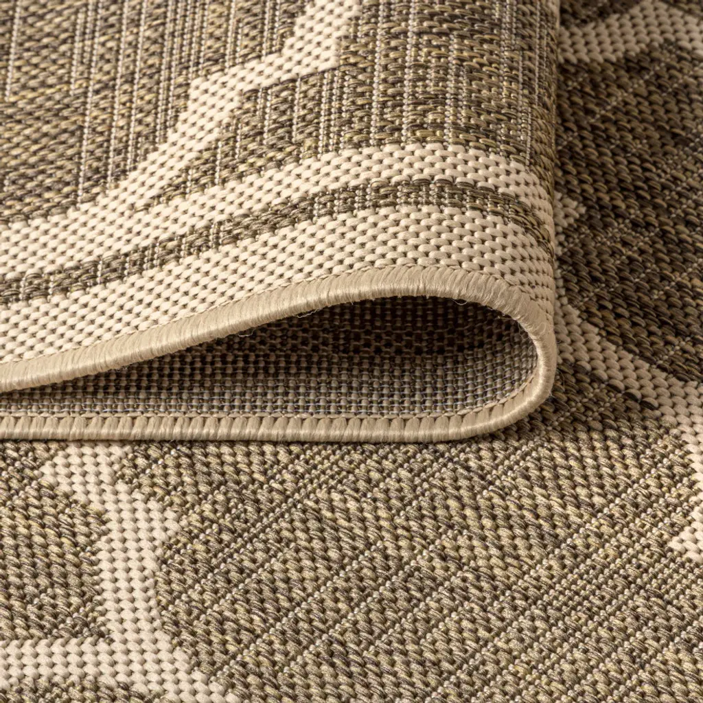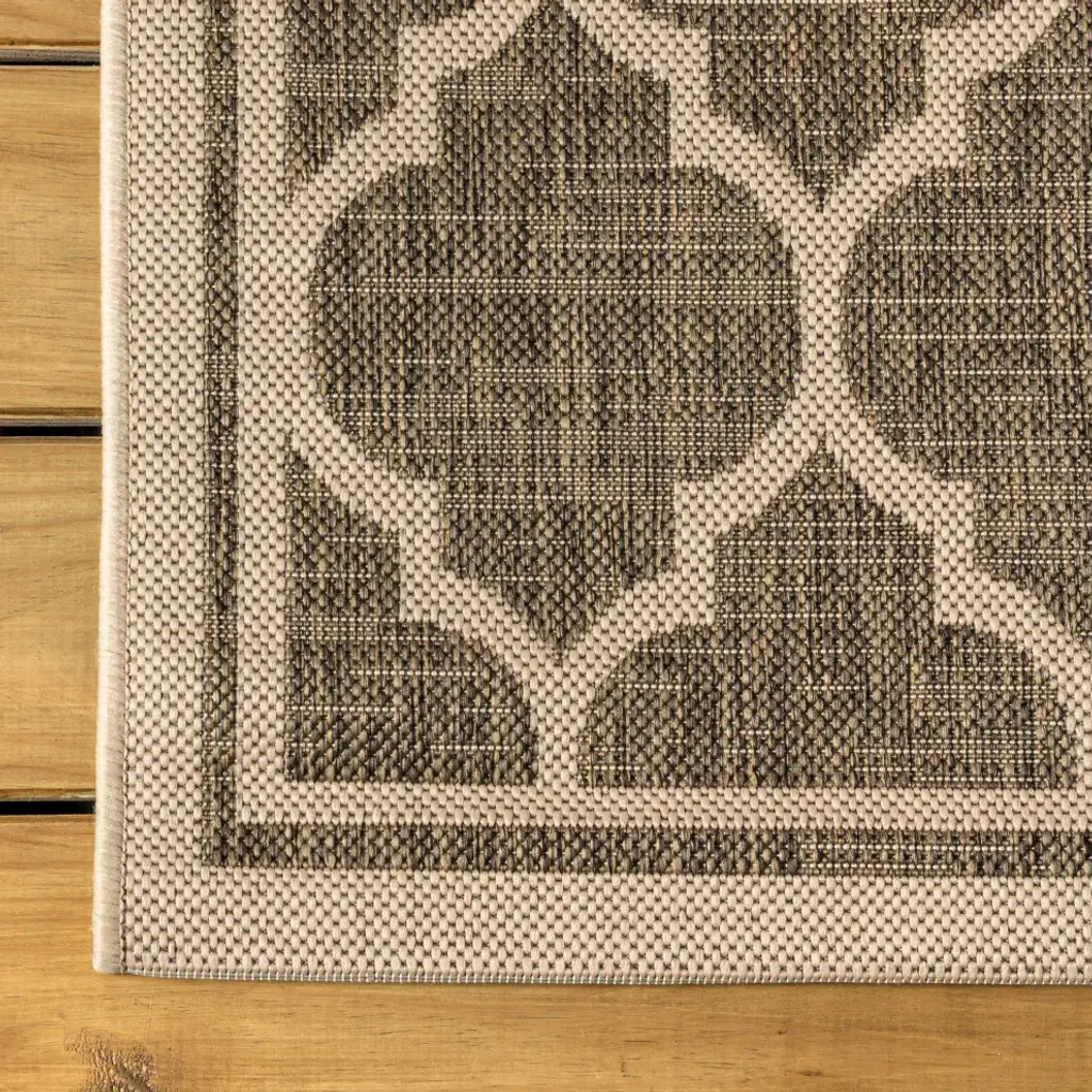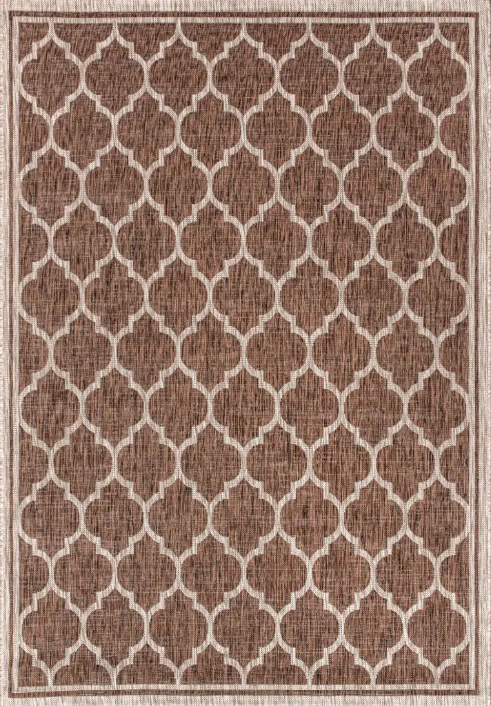 Our popular geometric design is inspired by Moroccan tile patterns. This classic rug adds eclectic style to an outdoor porch or patio. Mingled tones of deep brown with a beige ogee trellis pattern give this rug a hand-woven texture. The flatweave design is great for high-traffic spaces indoors too.Features:• Flat-weave construction of 100% polypropylene• Deep brown and beige with a handwoven mingled texture• Water resistance with 0.19" pile• 100% Polypropylene• No backing, use of rug pad is recommended (sold separately)• Power Loomed in Turkey• Actual Dimension: 5 ft. 3 in. x 7 ft. 7 in.• Color: Brown/Beige• Thickness measures: 0.19 in.• Available in multiple sizes and/or colorsRug Care:• Durable and easy-care - just sweep or hose down with mild soap and water• Packing and shipping may cause temporary creases in rugs, which will flatten out after a week on the floor; to expedite the process, try back-rolling your rug before laying it down, and then allow ample time for the remaining creases to relax• Please Note: Due to differences in monitors, some rug colors may vary slightly. Lengths and widths may vary from the published dimensions. Patterns may vary slightly according to shape and size selected.About us:Style your floors with JONATHAN Y. By combining fine craftsmanship and design, this New York creative studio is bringing fashion to your floors. The collection mixes sustainable organic materials, vibrant colors and trend worthy styles to create JONATHAN Y''s distinctive catalog of rugs.