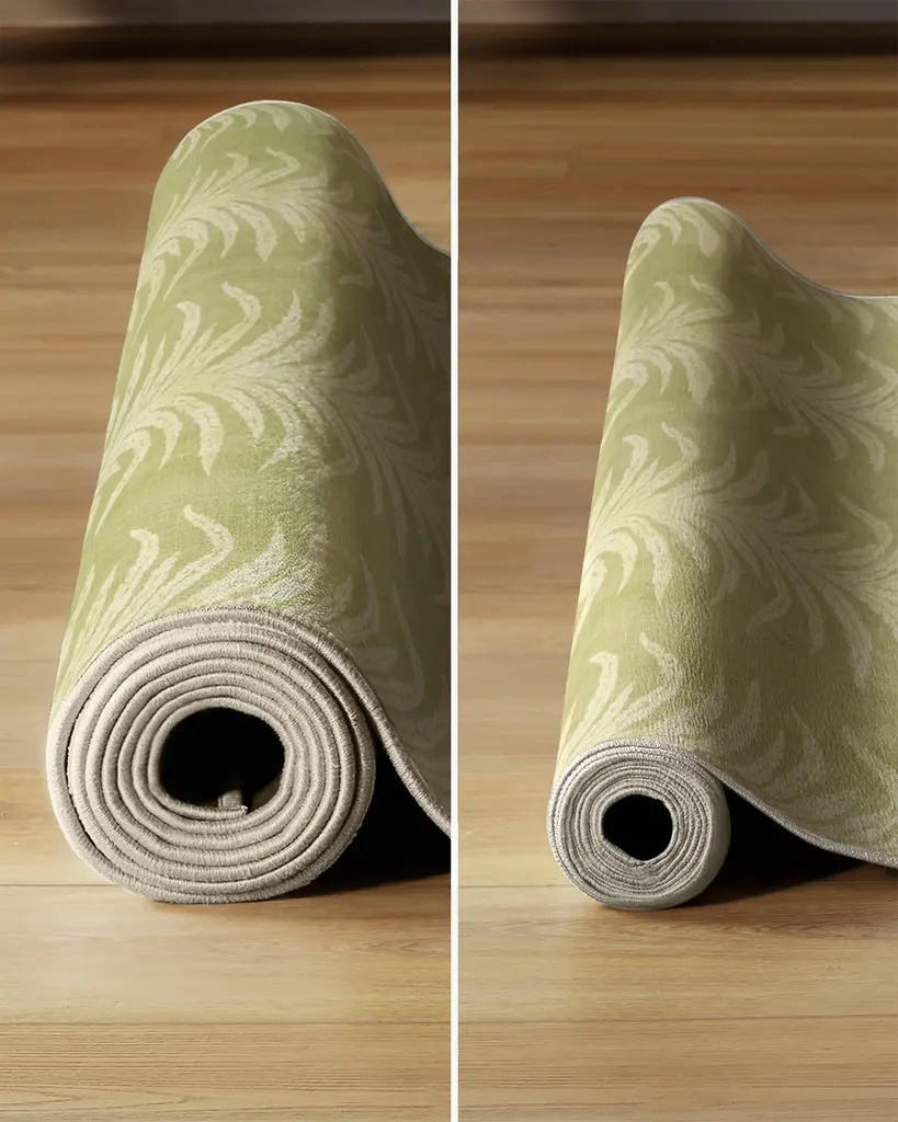Your story begins at home with our Sanderson Tree Fern Matcha Green Rug. This design features textured tree fern silhouettes that create organic movement within the motifs. The balance of bright cream and soft gold against the matcha green background adds serenity to any space. Water-resistant, stain-resistant, and machine-washable. Rug colors may vary slightly according to your device and the lighting in your space.
