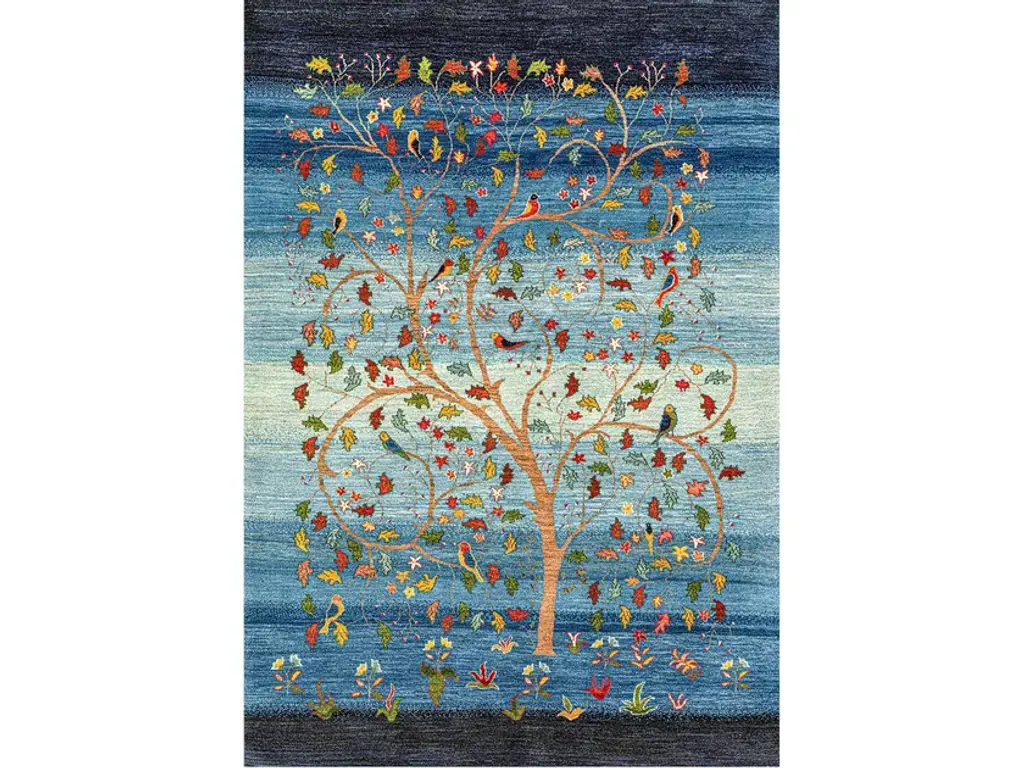 Tree Of Life 20 is a rectangular wool rug.Trees, flowers and animals (principally lions) are design themes that are used by tribal women to weave some of Zollanvari’s most original Gabbehs. The weavers are given patterns and colour ranges (often inspired by ancient and archaic patterns such as the ‘Tree of Life’) but have a free hand in producing these works of woven art using their imaginations and the traditional design vocabulary passed down through each new generation of weavers. This makes each Gabbeh unique and individual. Flora & Fauna design Gabbehs are also available in Zollanvari Super Fine (Kashkuli, Luribaft and Bulurbaft) and Zollanvari Fine qualities.The designs are available in custom and bespoke sizes and colours.