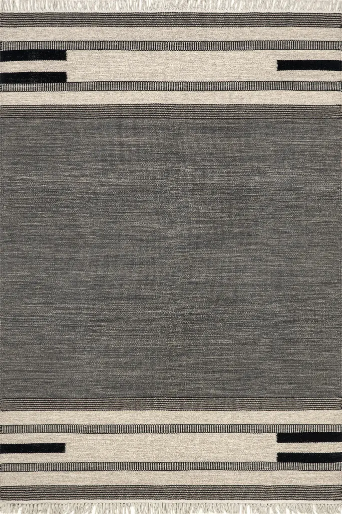 Trenza 90 X 60 Inch Black And Gray Area Rug, Cotton And Chenille
