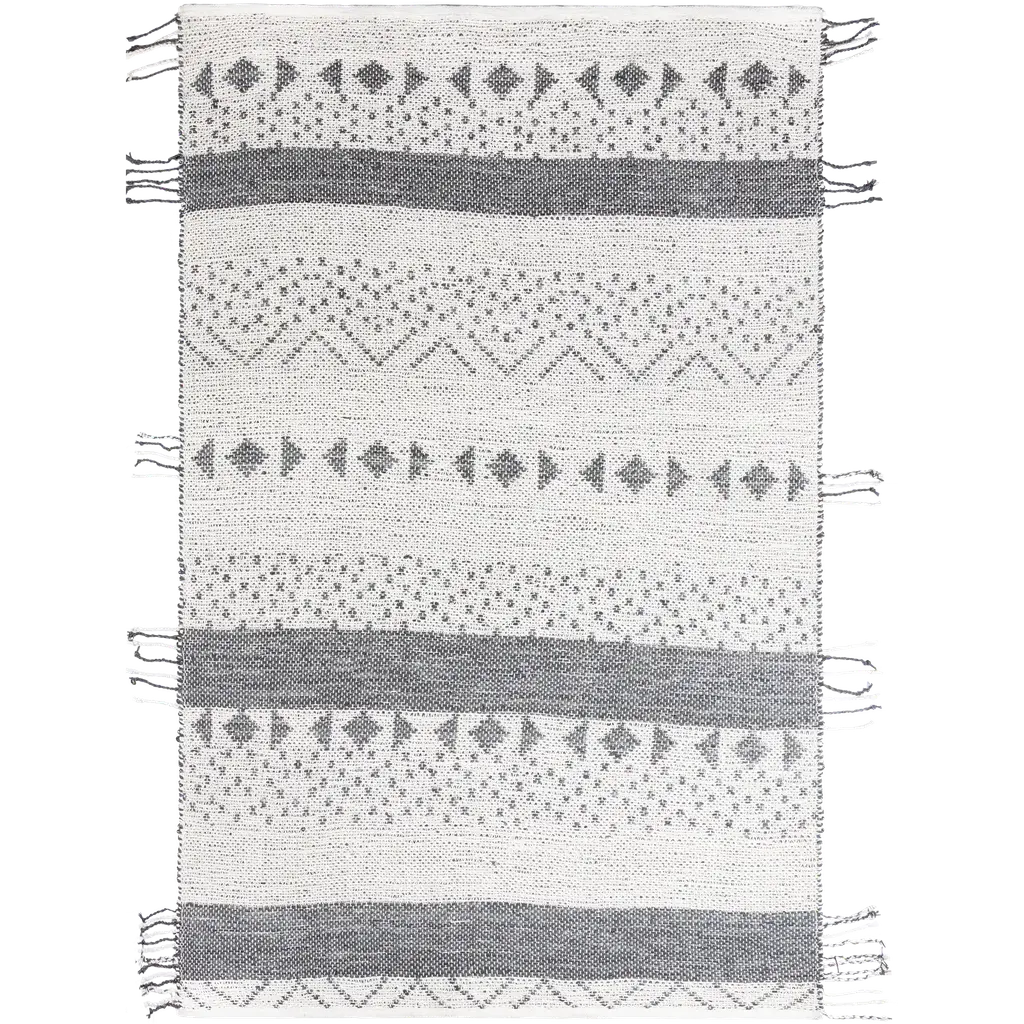 Bold and inspiring, the beautiful global-inspired designs of this rug are sure to add something new and fresh to any decor. Decorated in beautiful hues of light gray and charcoal , the colors of this rug will add a well traveled look to your space.