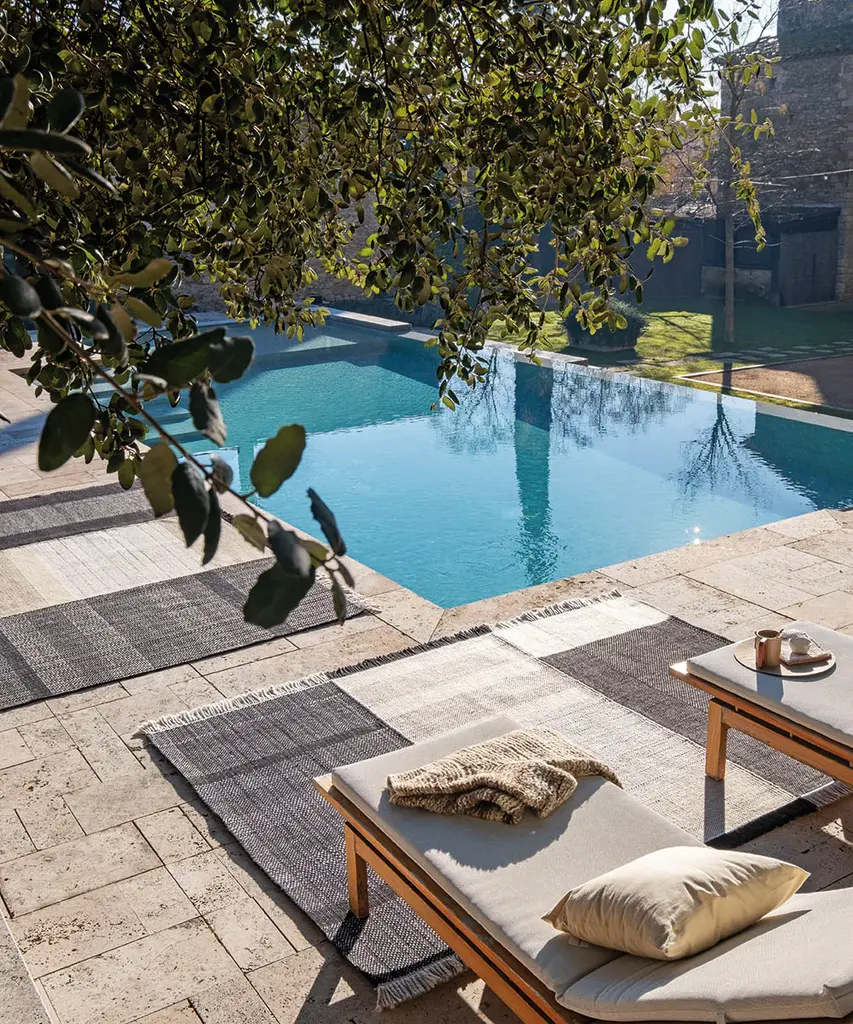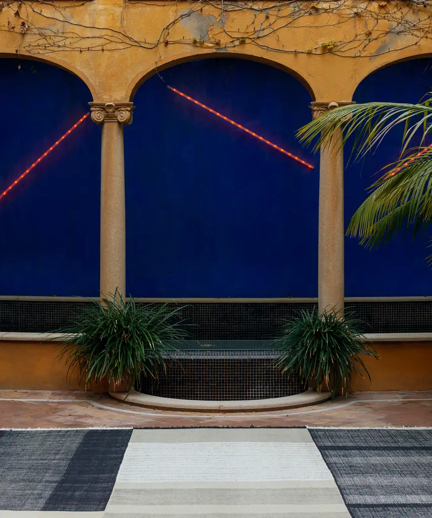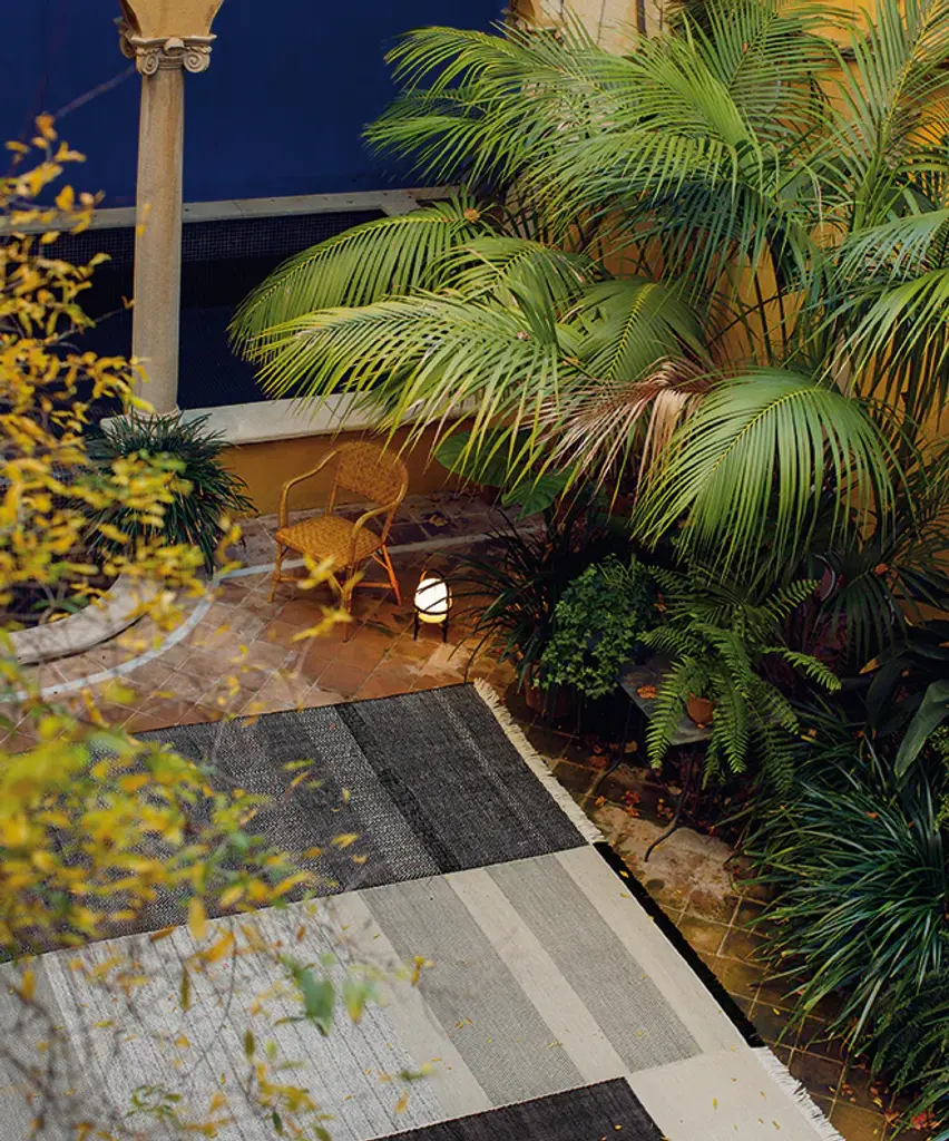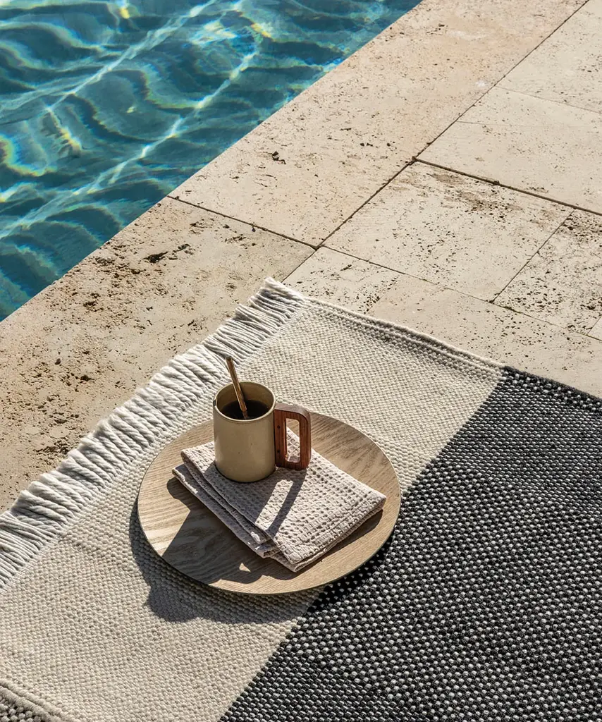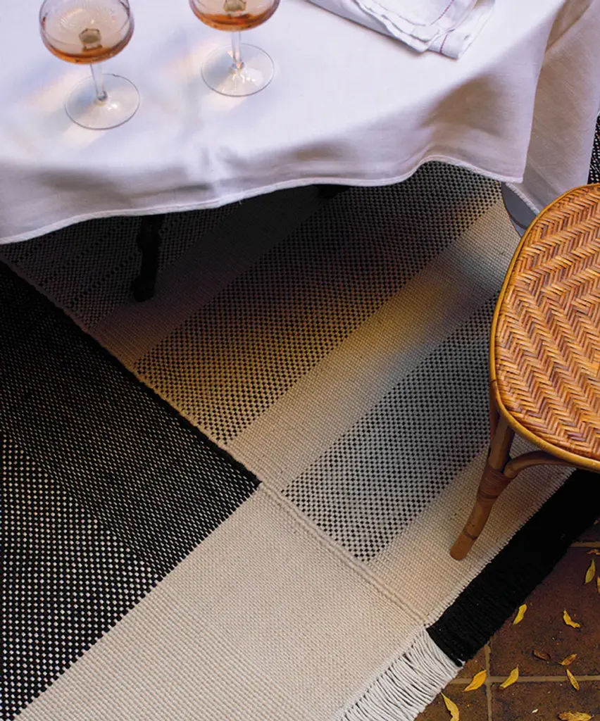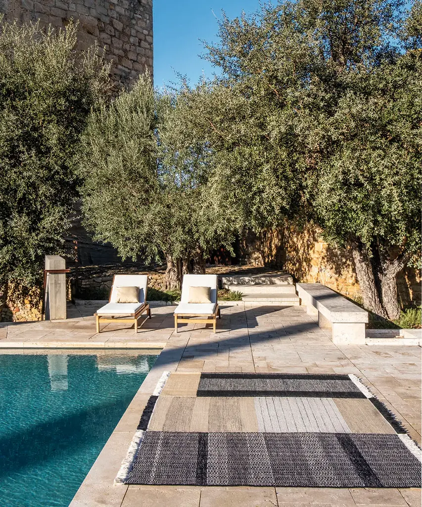 Transferring the essence of the Tres collection outdoorsthese two new models pay tribute to the millenary craft of weaving and are produced entirely with 100% recycled PET to adapt to outdoor environmental conditions. The particular PET fiber used offers a great softness that transfers the feeling of well-being from interior spaces to exteriors. In additionwith this fibernanimarquina turns waste from consumer plastic bottles into beautiful and long lasting rugsguaranteeing the traceability and certification of materials and manufacturing processes. By using recycled PET fiberwe give a second lease of life to plastic bottlesthus minimizing our impact by avoiding the use of new resources. Handloomed in India by award-winning Spanish rug manufacturernanimarquina.