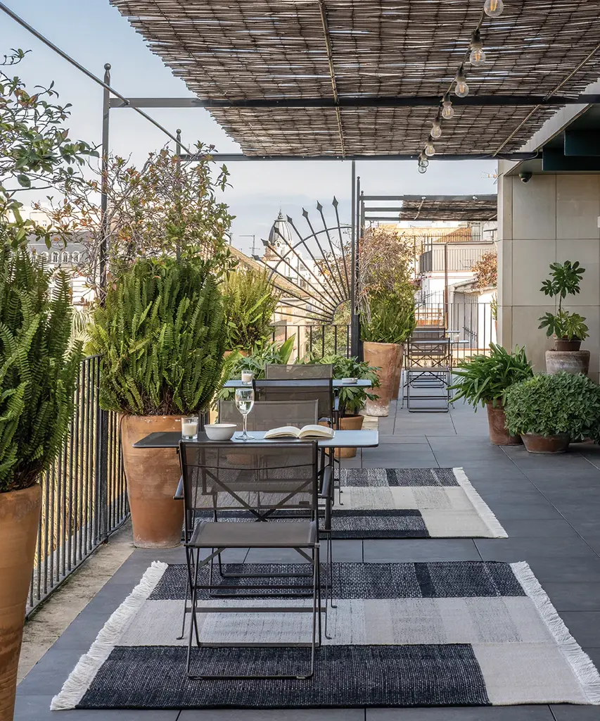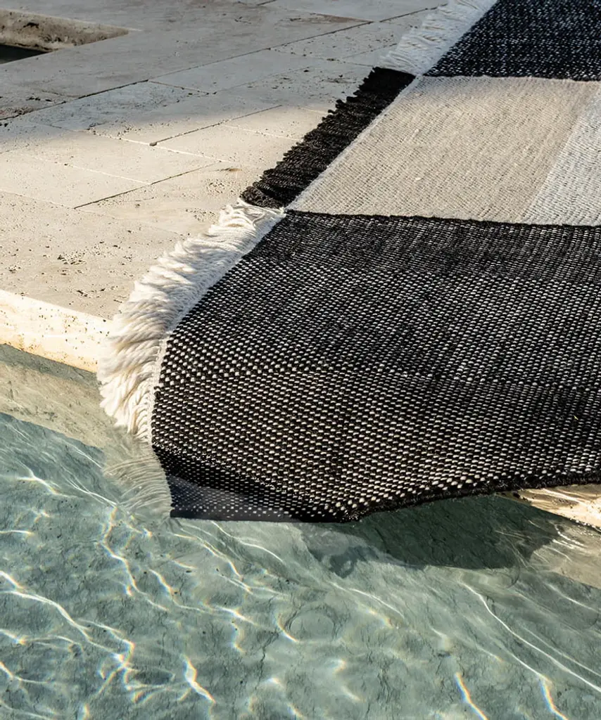 Transferring the essence of the Tres collection outdoorsthese two new models pay tribute to the millenary craft of weaving and are produced entirely with 100% recycled PET to adapt to outdoor environmental conditions. The particular PET fiber used offers a great softness that transfers the feeling of well-being from interior spaces to exteriors. In additionwith this fibernanimarquina turns waste from consumer plastic bottles into beautiful and long lasting rugsguaranteeing the traceability and certification of materials and manufacturing processes. By using recycled PET fiberwe give a second lease of life to plastic bottlesthus minimizing our impact by avoiding the use of new resources. Handloomed in India by award-winning Spanish rug manufacturernanimarquina.