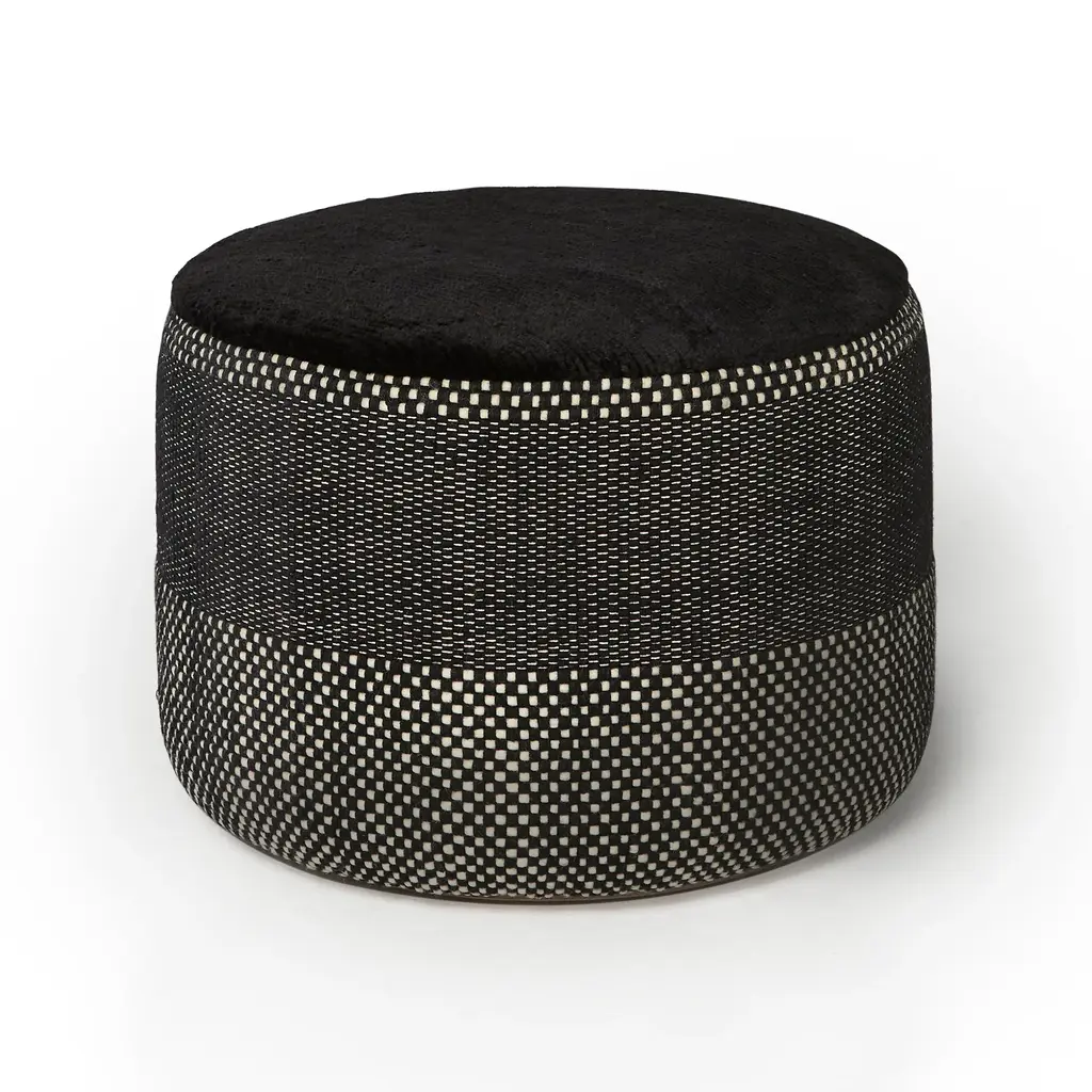The collections Tres and Persian Colors come together to create a very special pouf, a lightweight cylindrical accessory, manageable and adaptable to any space. The combination Tres + Persian Colors impact the senses in a very unique way. The Persian seat is very soft and comfortable, and the Tres body is enormously contemporary. The seat fibre is very pleasant to the touch due to its softness, which means that when you rest your feet on it you really feel you are touching a soft rug, providing a feeling of comfort and wellbeing. The sides of the Tres Persian Pouf Black are made with Nanimarquina’s Tres black rug and the seat is made with Persian Colors reedited in matte black. Both the Tres and the Persian Colors collections reflect Nanimarquina's passion for craftsmanship. Through both collections, and now also with the new Tres Persian Pouf, an optimistic call is made to see beauty in details and respect tradition. Features
