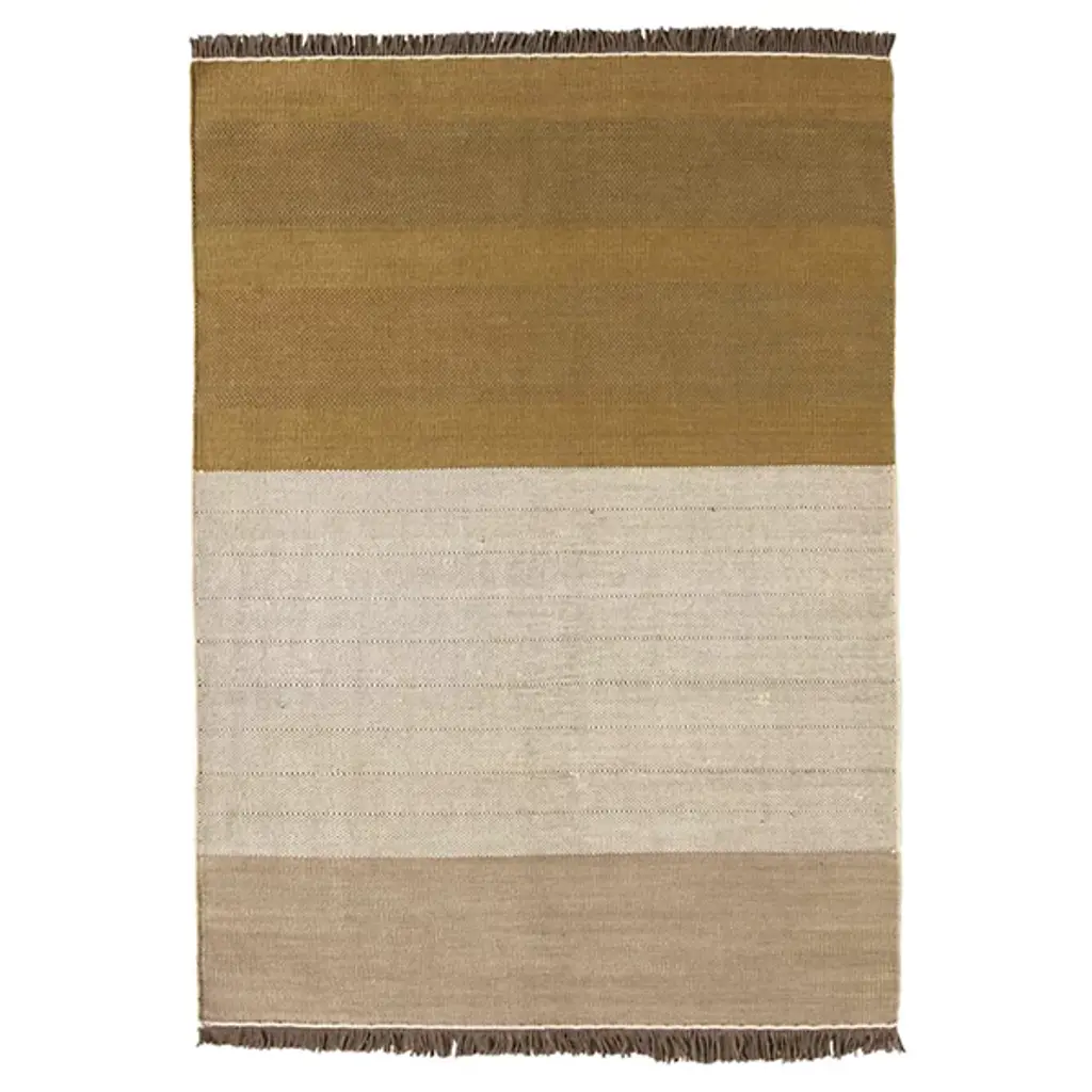 The Nanimarquina Tres Stripes Rug was created by Marquina herself to pay tribute to the ancient craft of hand weaving. In order to show off the three individual materials used to make the rug (New Zealand wool, wool felt, cotton), the rug is hand loomed in three distinctive sections before being connected together. The flat woven dhurrie style of the rug also celebrates the rug weaving tradition.