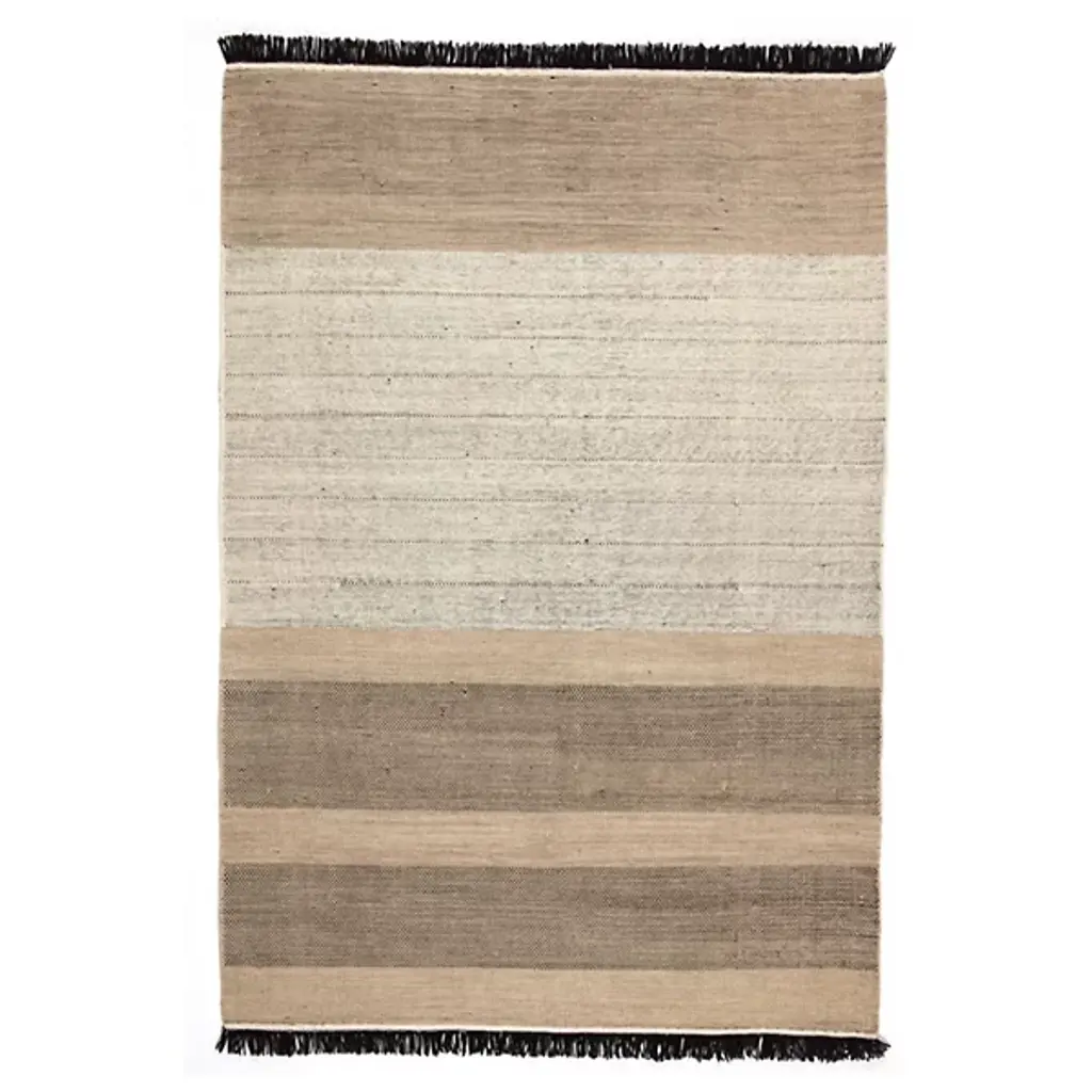 The Nanimarquina Tres Stripes Rug was created by Marquina herself to pay tribute to the ancient craft of hand weaving. In order to show off the three individual materials used to make the rug (New Zealand wool, wool felt, cotton), the rug is hand loomed in three distinctive sections before being connected together. The flat woven dhurrie style of the rug also celebrates the rug weaving tradition.