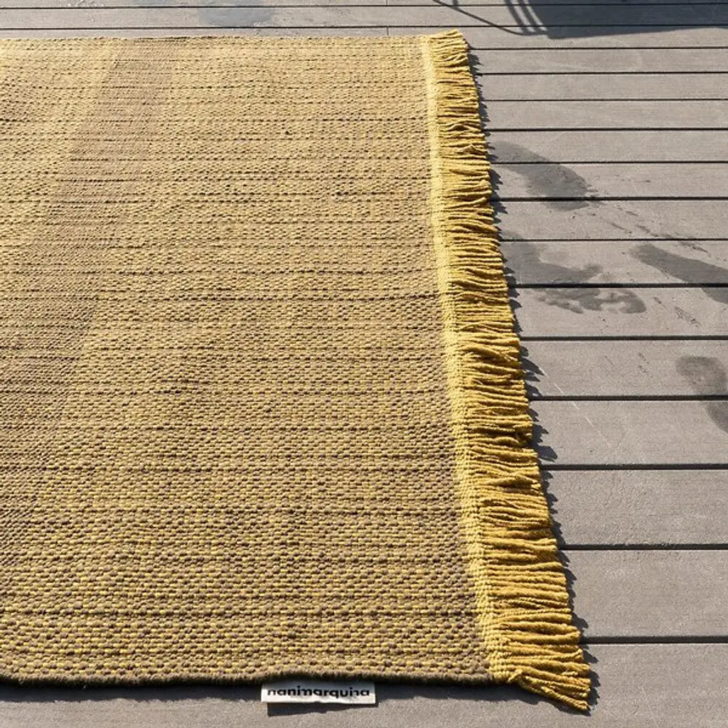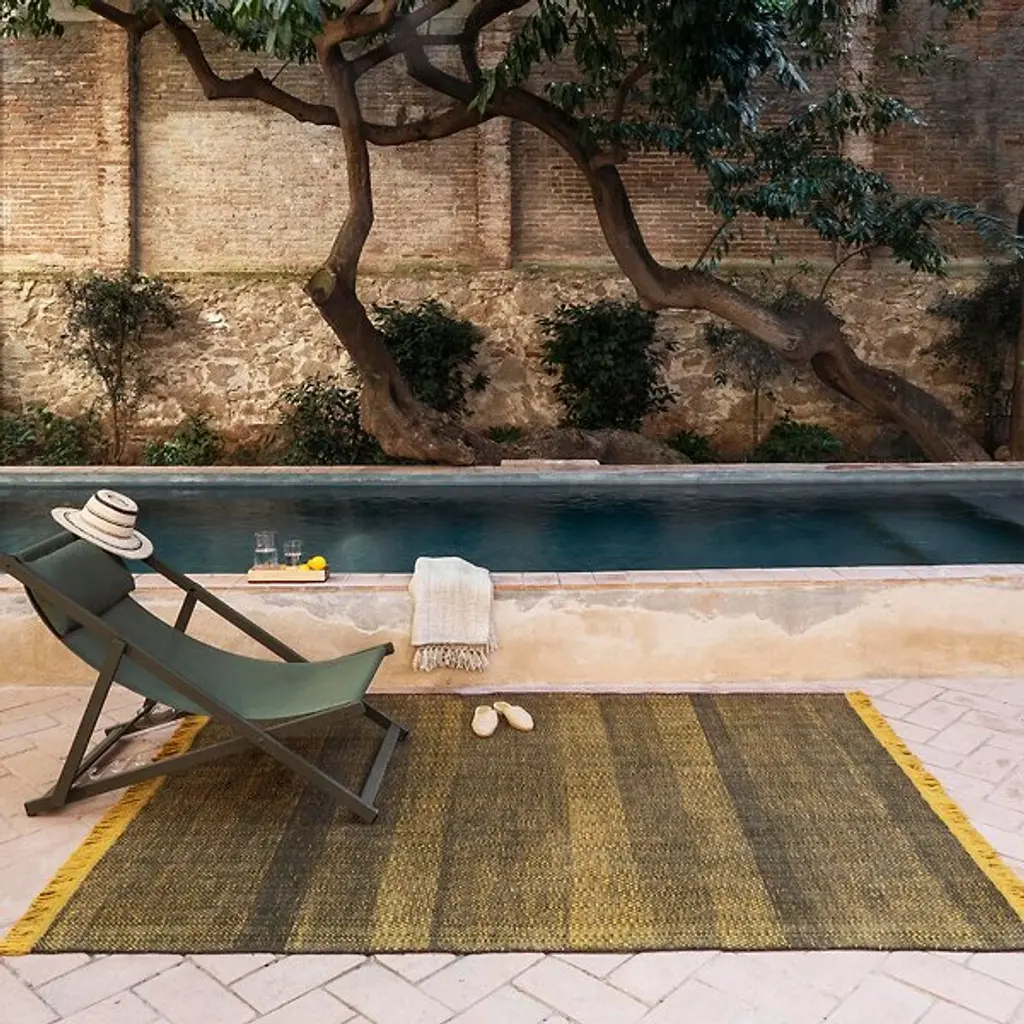 The Tres Texture Outdoor Rug by Nanimarquina embraces tradition with this design by Elisa Padrón and Nani Marquina. With a strong, distinctive identity, this traditional Indian flat-weave Dhurrie style rug is simply beautiful. Created to define and bring comfort to outdoor spaces while carrying with it the warmth of interior settings, this tribute to the craft of weaving displays a lively pattern. Made with PET fibers, this textile reflects both designers’ ability to bring a sense of simplicity to complex creative processes and lends a contemporary, inviting touch to the home.