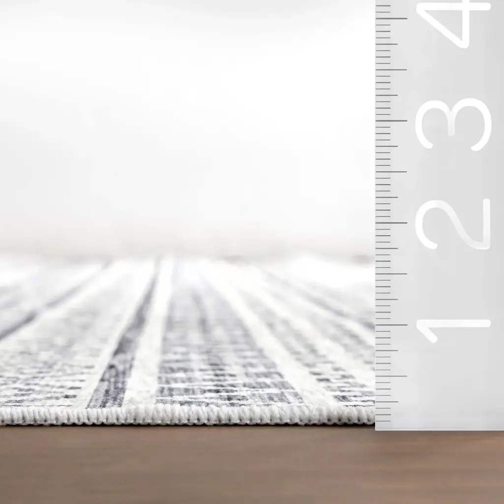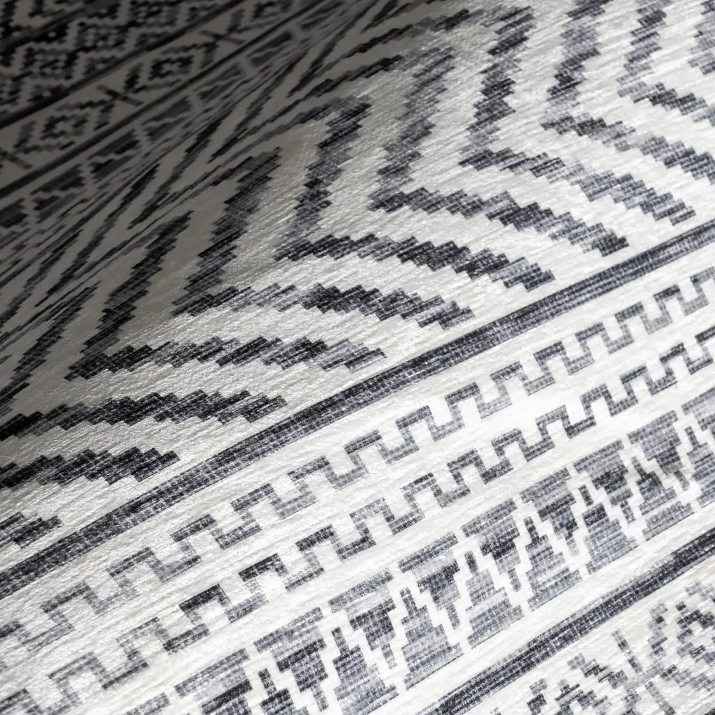 Tribal Banded Spill Proof Washable Rug | Grey - 6' X 6'