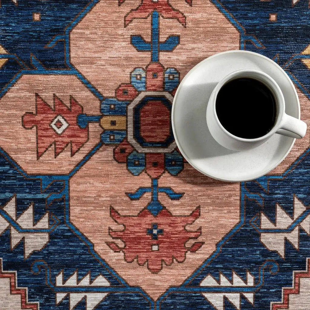 Tribal Medallion Spill Proof Washable Rug | Rust - 2' 6" X 8'