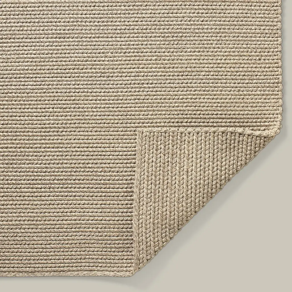 A study in texture and restraint, the Tricot Outdoor Rug brings elevated simplicity to any space - indoors or out. Expertly handwoven in India from durable, easy-care polypropylene, this extra chunky woven design echoes the refined minimalism at the heart of Lemieux et Cie. Inspired by classic knit patterns, its subtle geometry and tonal palette layer beautifully into modern, coastal, or transitional interiors. Designed to weather the elements and the everyday, it’s perfect for patios, entryways, and beyond. Use with a rug pad for added comfort and stability. When needed, just hose off and let it air dry—effortless elegance, made to last.