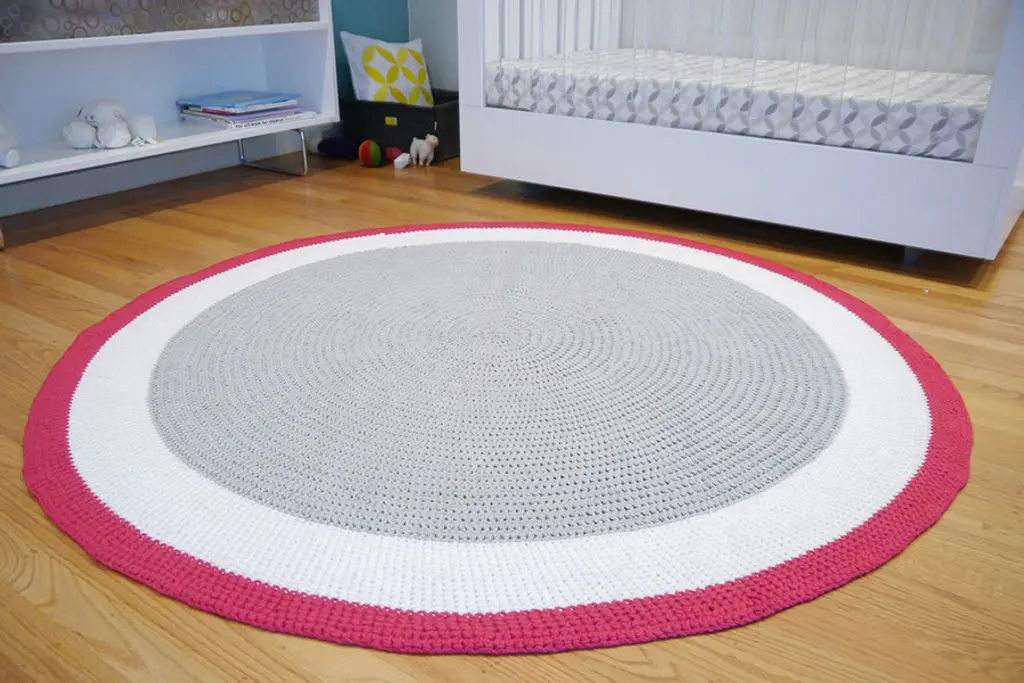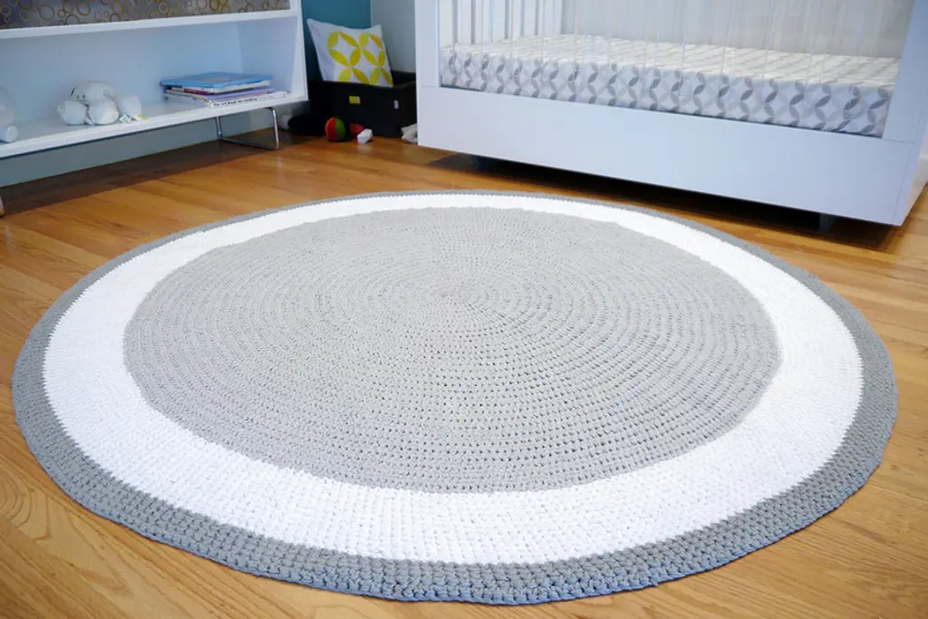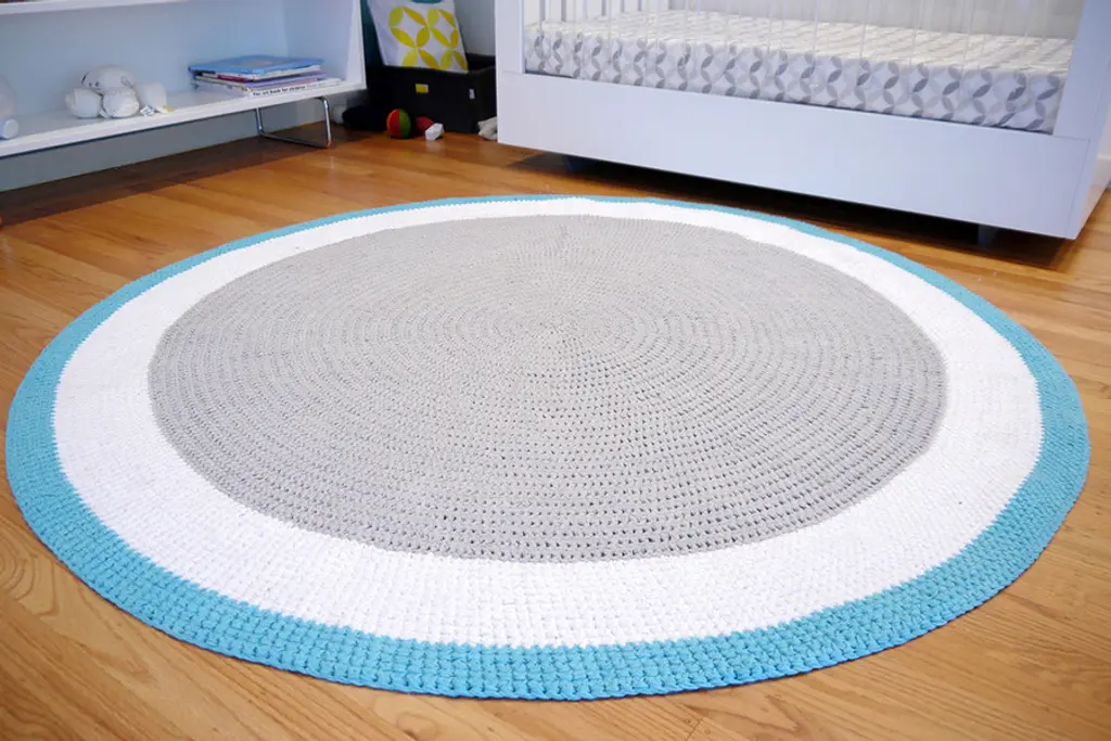 Your baby will be crawling around in to time at all. Make sure they have a safe and comfortable rug to explore their new surroundings on. The Trio Rug from Spot on Square is made from 100 percent cotton yarn and comes four color choices to accommodate any bedroom dcor. Sure to endure a lifetime of animal cracker crumbs, the Trio Rug belongs in your babys nursery.