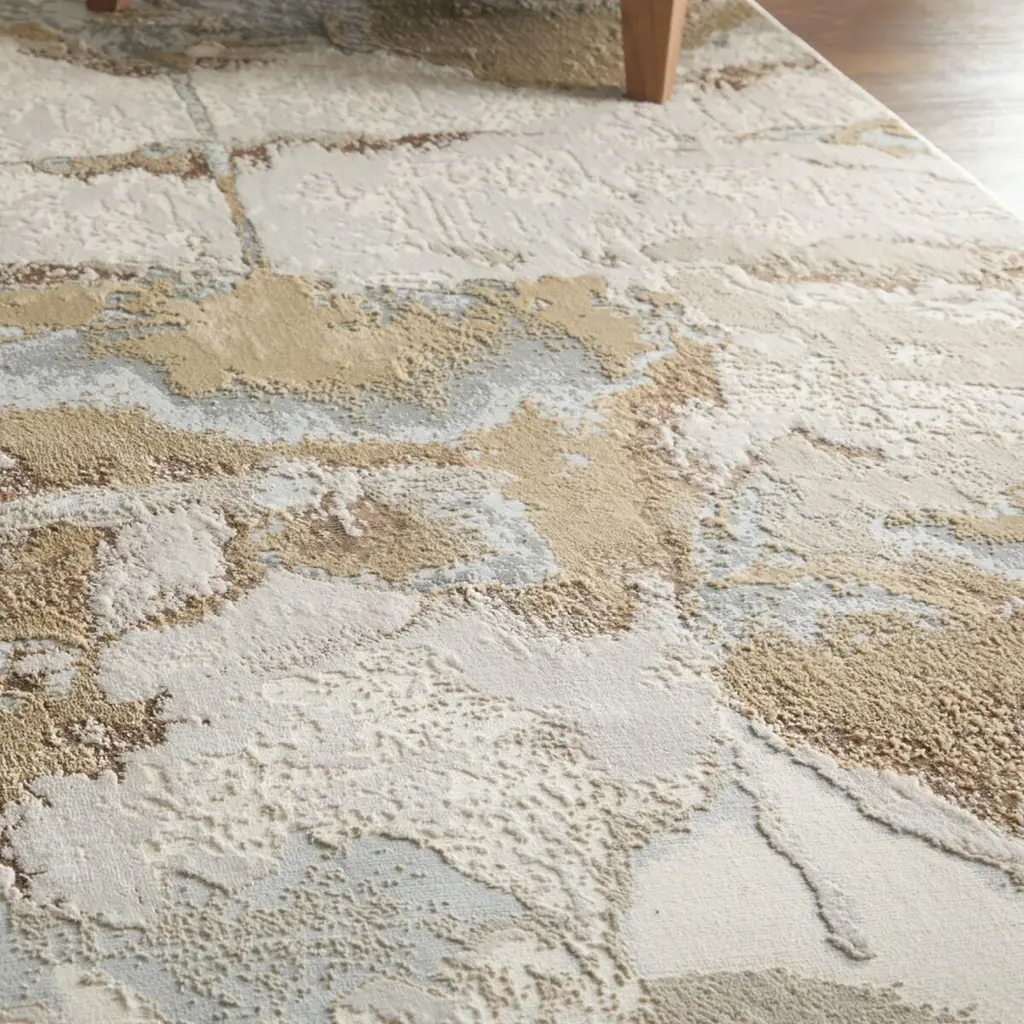 The Tripoli collection is made in in Turkey. Power loomed in an ultra-durable polypropylene and polyester blend, the area rug is highly durable but also in an on-trend design in golds and champagne. Featuring gold and silver contemporary designs, the pattern and colors of this rug create impressive and sophisticated spaces.