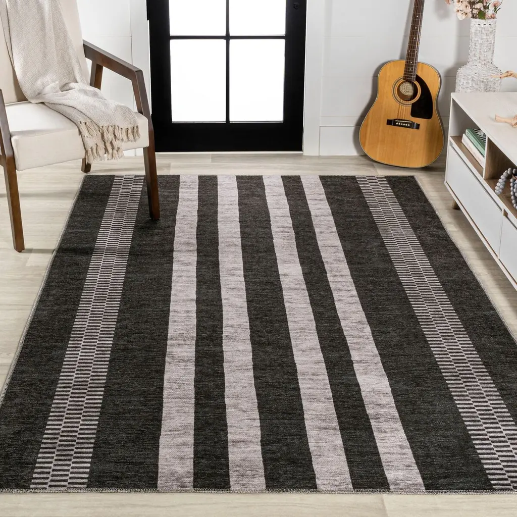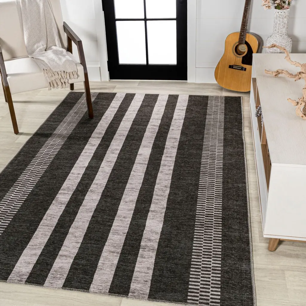 Stylish, durable, and machine washable: Who says a rug can't have it all? The heathered fibers give this striped polypropylene rug artisanal allure. A rug pad is recommended to help prevent slipping and extend the life of the rug.