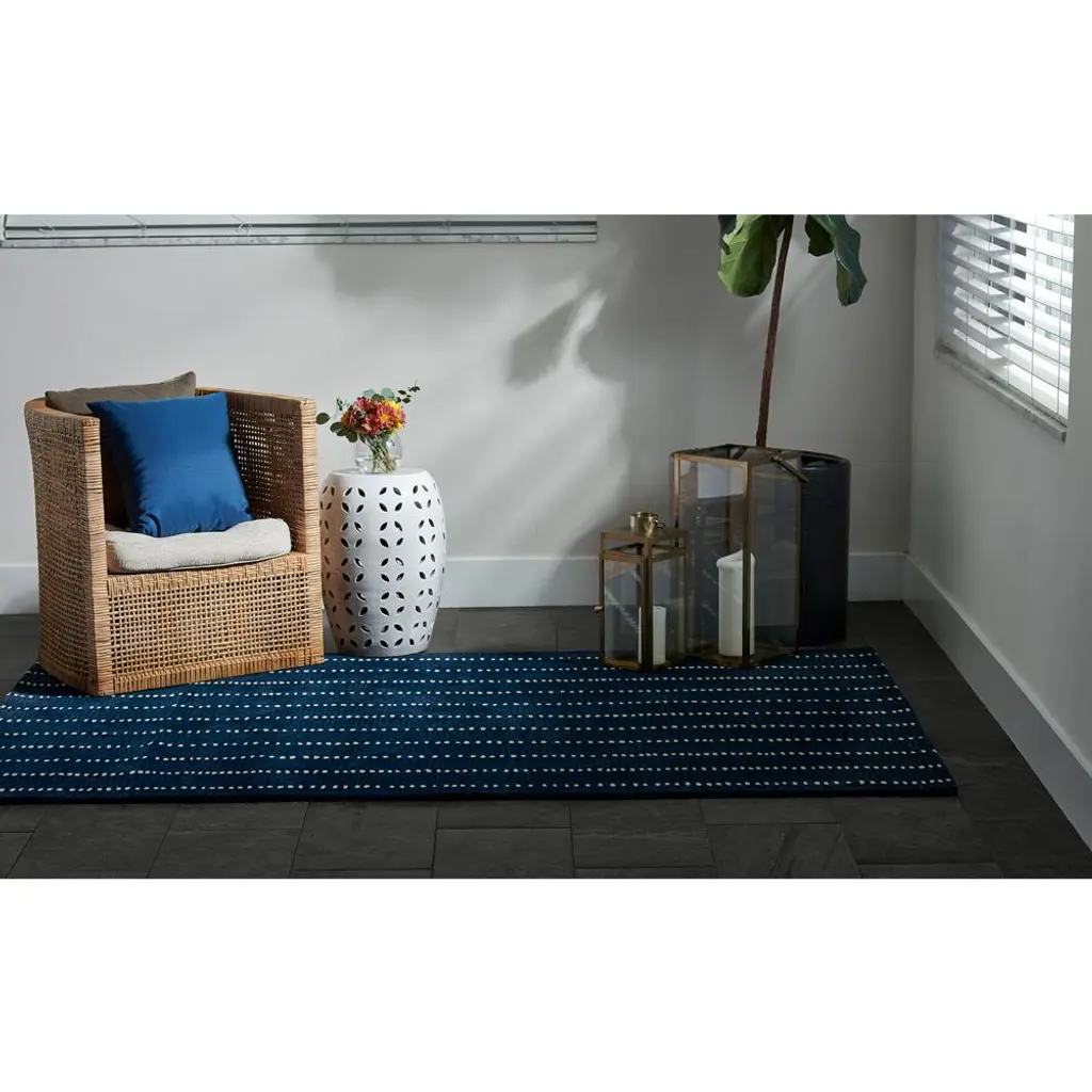 Tristan Modern Classic Navy Blue Wool Striped Patterned Rug - 8'x10'
