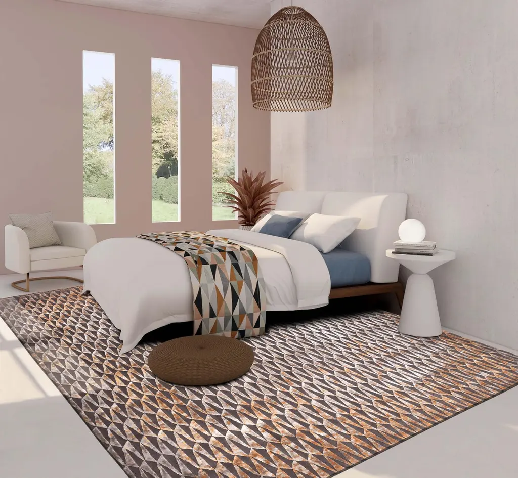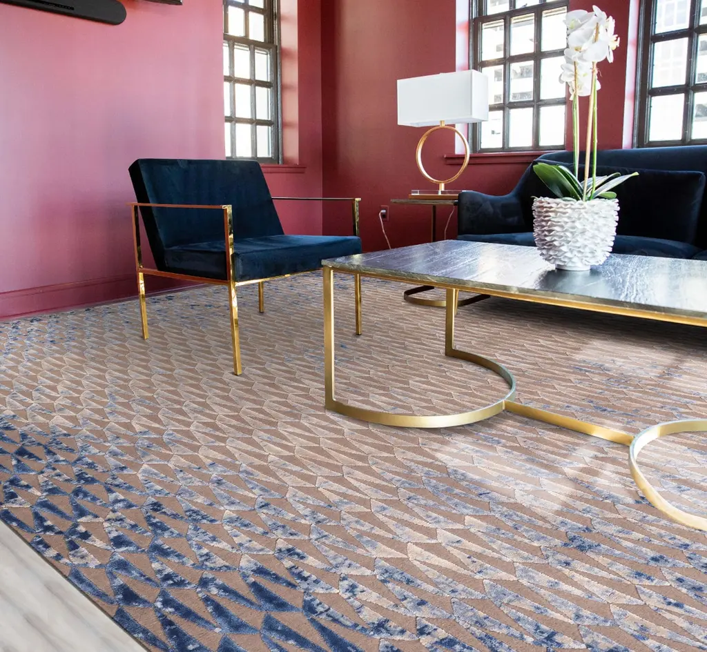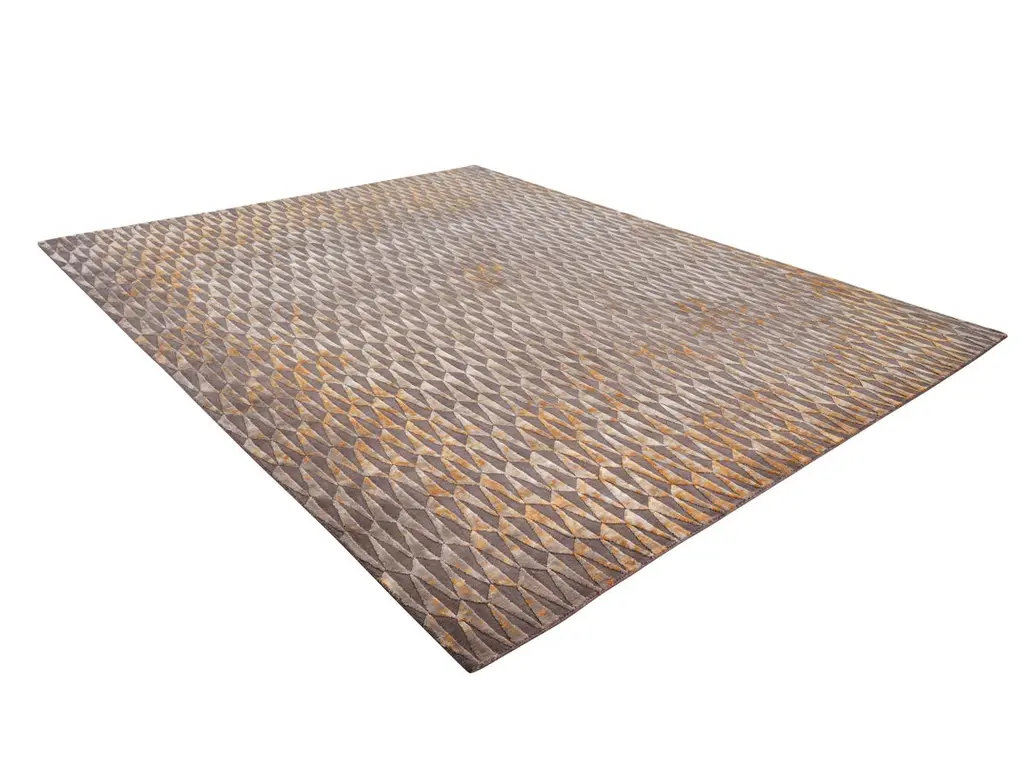From brutalist concrete cubes to sky-scraping structures in steel, the world of urban architecture is an ever-continuous documentary of the human spirit. Encompassing its many dimensions – fortitude, ambition, adaptability, and harmony, to name a few. Through shape, form, pattern, structure, and scale – many a hidden gem, a hidden story, in plain sight – which forms the base of the Urbane II collection. Beyond expressions of geometric abstraction, Urbane II presents emotive works of art for contemporary living.Javits Centre in New York is an assemblage of rectilinear forms and the primary venue for trade shows. The physical aspect of this building could be traced to the complex history of families and businesses as a result of urbanization. The carpet is staging the same complexities of urbanism. Available in colors Taupe rust and silver blue in different sizes 170 x 245 cm - $3,391180 x 275 cm - $4,161245 x 305 cm - $6,164275 x 365 cm - $8,322305 x 425 cm - $10,787365 x 460 cm - $13,868.