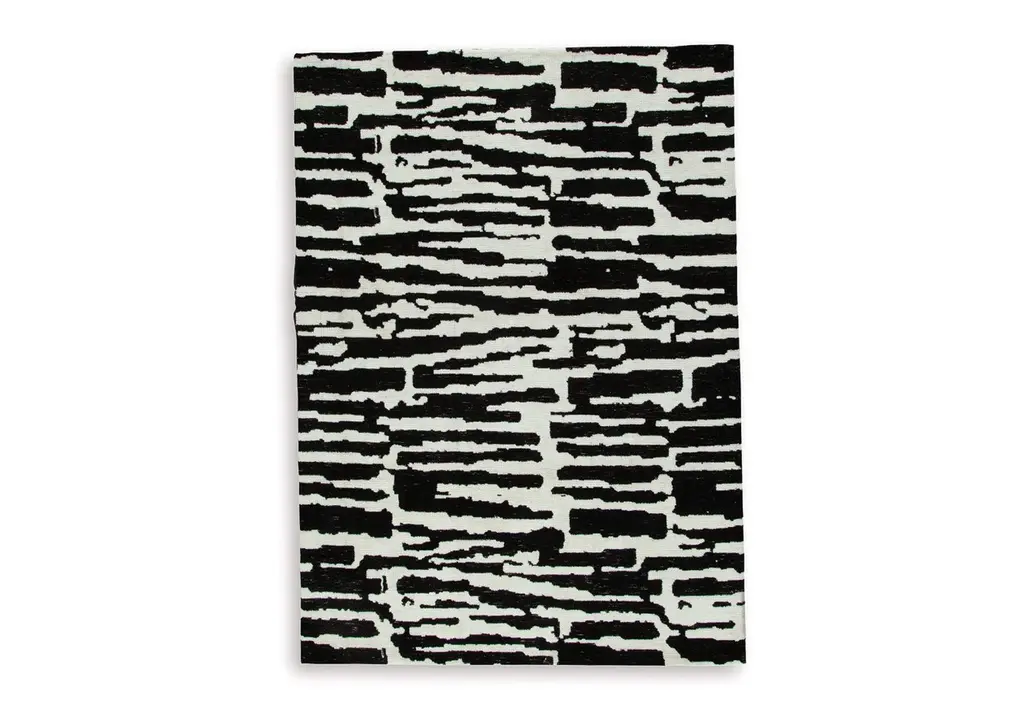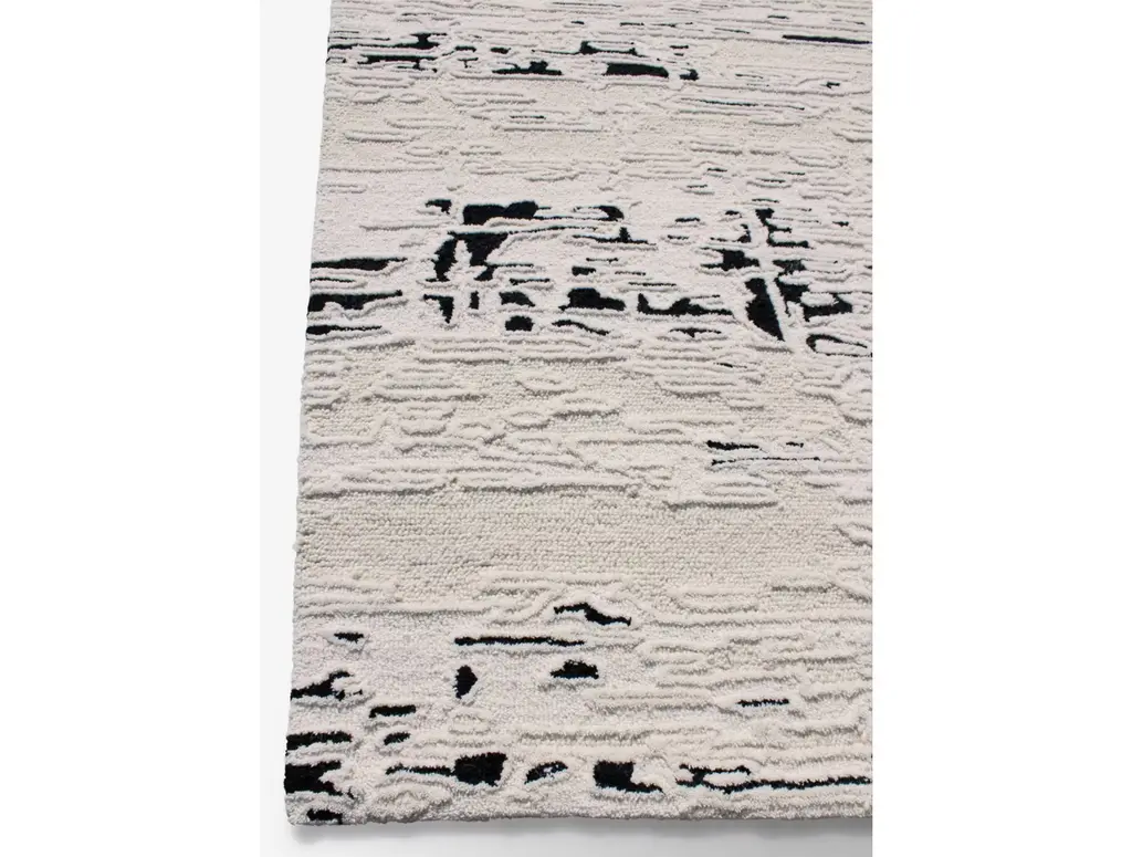 Create a soothing yet bold foundation for your living space with the Dynamic Trono Black/White Area Rug. This contemporary rug features a soft texture in a raised abstract pattern for a wonderful feeling underfoot. Hand tufted in India of 100% wool for long-lasting beauty.