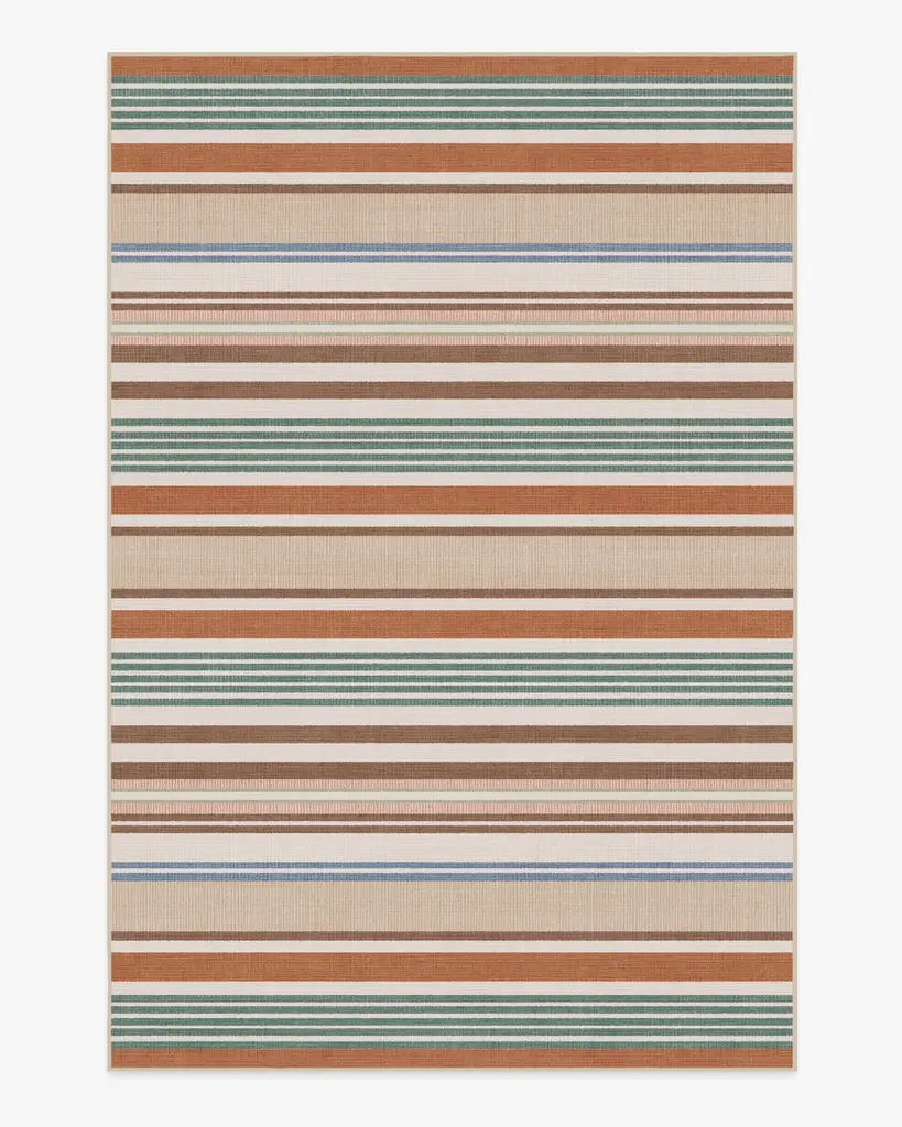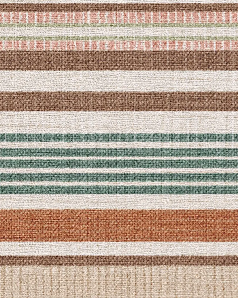 Create a five-star stay with our Tropez Stripe Red Multicolor Rug. Inspired by soft, woven textures, this design features horizontal, multi-color stripes that create rhythm and balance. A palette of antique red mixed with teal, warm browns, and neutrals is complemented by subtle pops of pink and sage. Water-resistant, stain-resistant, and machine-washable. Rug colors may vary slightly according to your device and the lighting in your space.