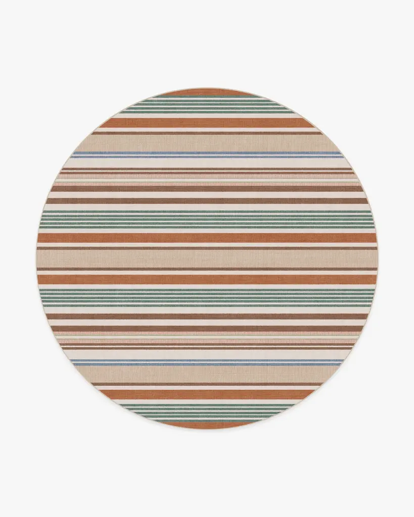 Create a five-star stay with our Tropez Stripe Red Multicolor Rug. Inspired by soft, woven textures, this design features horizontal, multi-color stripes that create rhythm and balance. A palette of antique red mixed with teal, warm browns, and neutrals is complemented by subtle pops of pink and sage. Water-resistant, stain-resistant, and machine-washable. Rug colors may vary slightly according to your device and the lighting in your space.