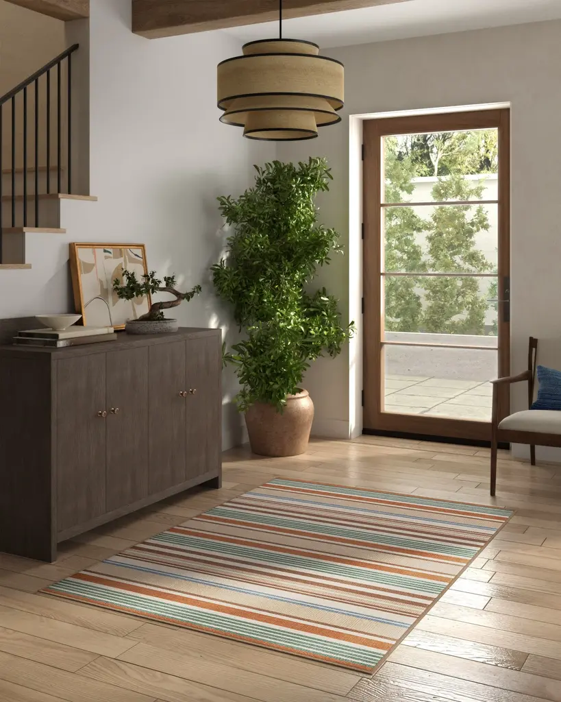 Create a five-star stay with our Tropez Stripe Red Multicolor Rug. Inspired by soft, woven textures, this design features horizontal, multi-color stripes that create rhythm and balance. A palette of antique red mixed with teal, warm browns, and neutrals is complemented by subtle pops of pink and sage. Water-resistant, stain-resistant, and machine-washable. Rug colors may vary slightly according to your device and the lighting in your space.