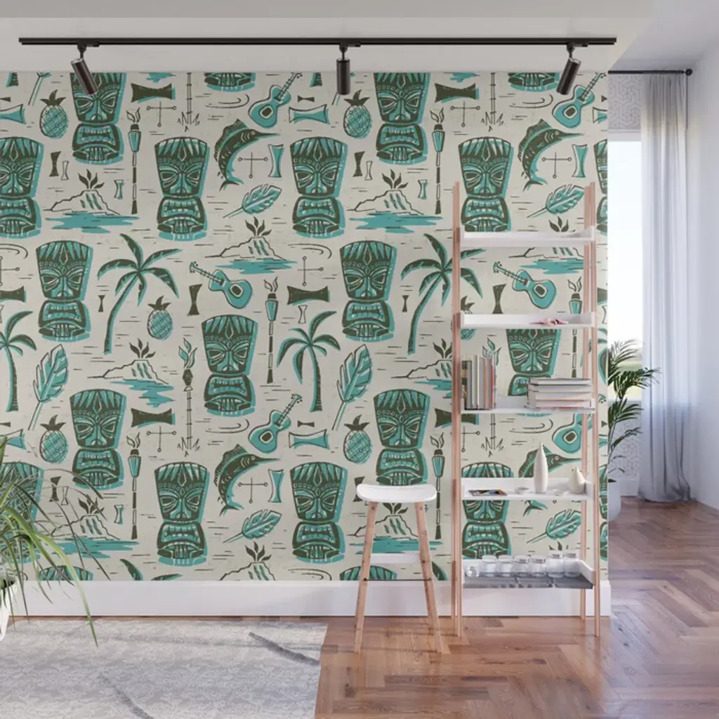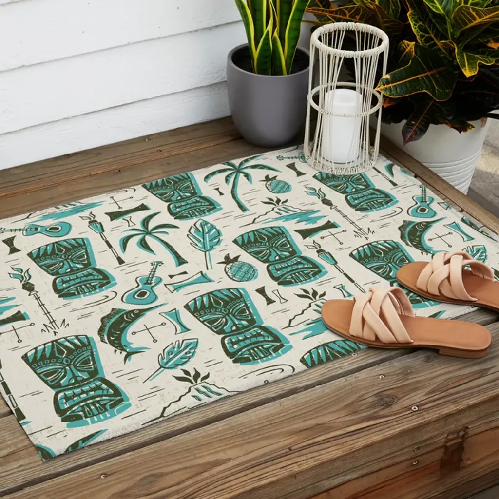 Tropical Tiki - Cream & Aqua Outdoor Rug