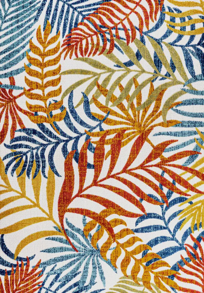 Whether you live in a tropical beach retreat or just love jungalow style, the allover palm frond pattern of this rug brings the jungle home. Overlapping palm tree branches create a rich pattern of blue, coral-red yellow and orange. The pet-friendly and kid-proof flatweave design makes it easy to clean.Features:• Power loomed from durable synthetic fibers, with a flat .18" pile• The multicolor design features a bright tropical color palette - fruity red, orange, yellow and the blue of the sea• Made from easy-care polypropylene; sweep or vacuum to clean• 100% Polypropylene• No backing, use of rug pad is recommended (sold separately)• Power Loomed in Turkey• Actual Dimension: 3 ft. x 5 ft.• Color: Cream/Orange• Thickness measures: 0.2 in.• Available in multiple sizes and/or colorsRug Care:• Vacuum regularly and spot clean as needed; avoid direct and continuous exposure to sunlight; use brushless vacuum; remove spills immediately; if liquid, blot with clean, undyed cloth by pressing firmly around the spill to absorb as much as possible; for hard to remove stains, professional rug cleaning is recommended; store in a dry, well ventilated area and rotate for consistent wear• Packing and shipping may cause temporary creases in rugs, which will flatten out after a week on the floor; to expedite the process, try back-rolling your rug before laying it down, and then allow ample time for the remaining creases to relax• Please Note: Due to differences in monitors, some rug colors may vary slightly. Lengths and widths may vary from the published dimensions. Patterns may vary slightly according to shape and size selected.About us:Style your floors with JONATHAN Y. By combining fine craftsmanship and design, this New York creative studio is bringing fashion to your floors. The collection mixes sustainable organic materials, vibrant colors and trend worthy styles to create JONATHAN Y''s distinctive catalog of rugs.