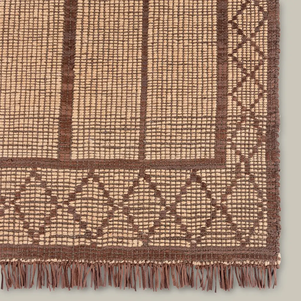A modern twist on the traditional Tuareg mats, the Tugart Collection celebrates elegance in minimalism. Historically built to withstand wear, the handwoven leather and jute construction ages gracefully. A soft-to-hand texture not often found with jute, as well as leather fringe, adds luxe touches to elevate this hardworking and stylish assortment of area rugs.