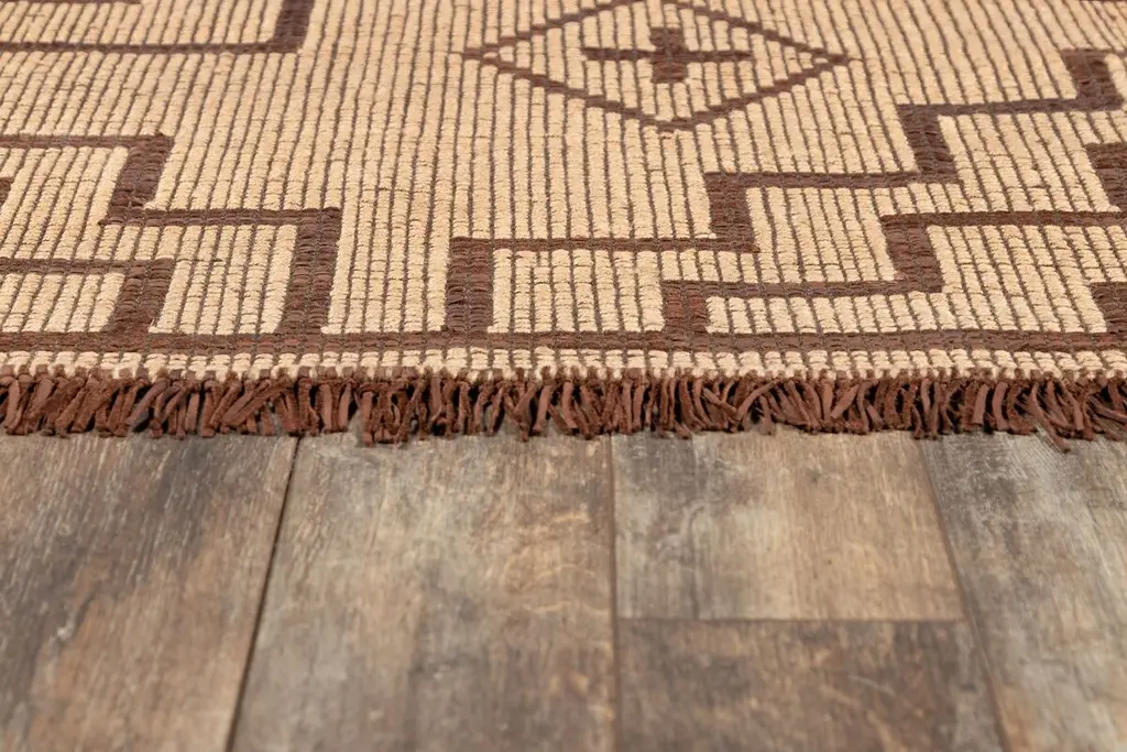 Handwoven of impressively soft jute with leather detailing and fringe, this rug was inspired by the mats woven by the Tuareg tribes of Morocco and Mauritania. As durable as it is beautiful, the rug brings time-honored artistry to its surroundings. A rug pad is recommended to extend the life of your rug and help keep it in place.