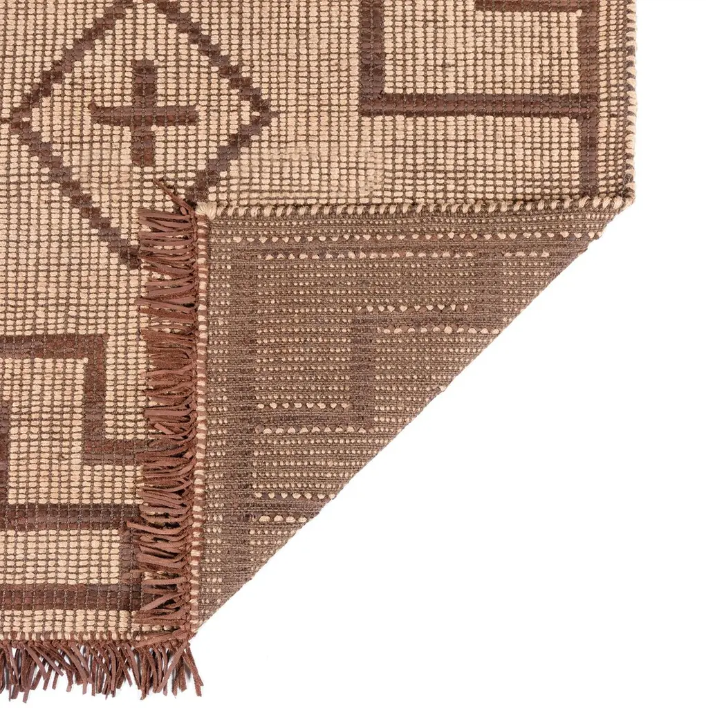 Handwoven of impressively soft jute with leather detailing and fringe, this rug was inspired by the mats woven by the Tuareg tribes of Morocco and Mauritania. As durable as it is beautiful, the rug brings time-honored artistry to its surroundings. A rug pad is recommended to extend the life of your rug and help keep it in place.