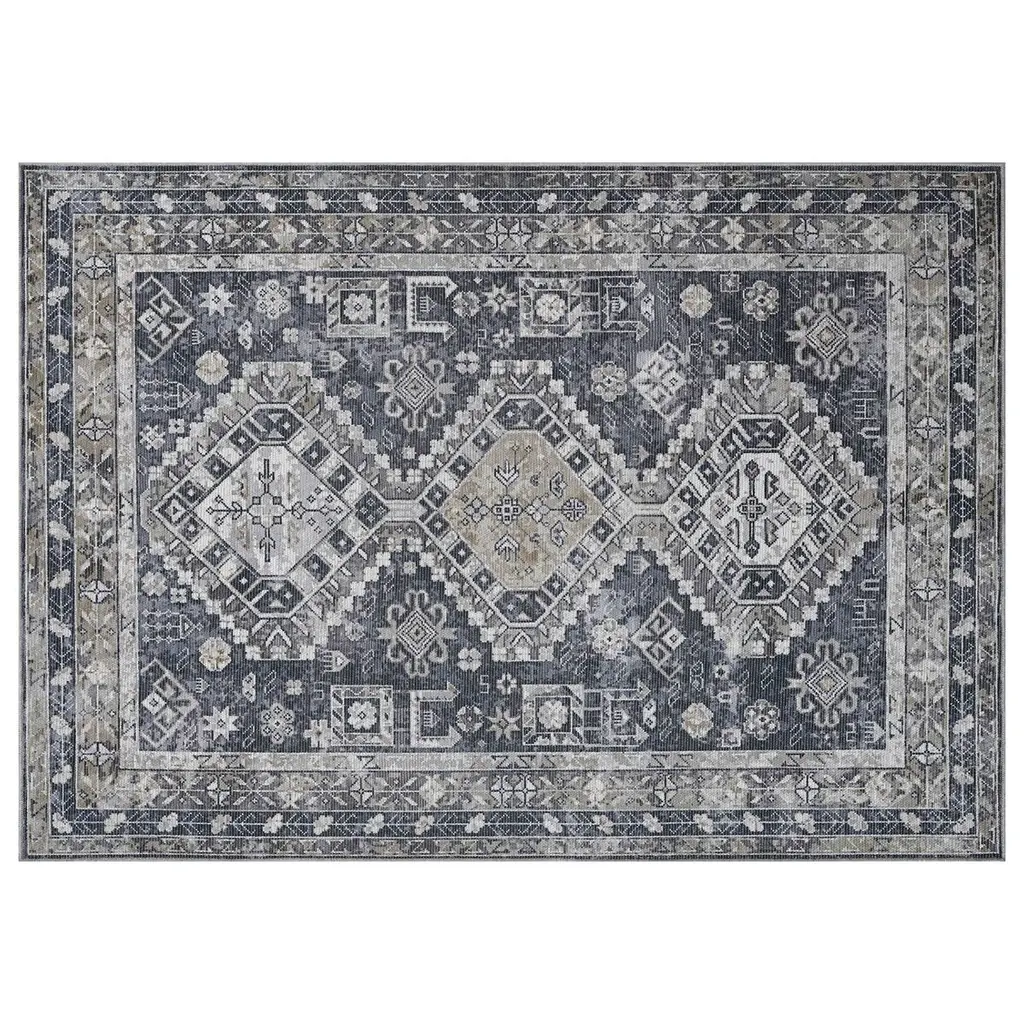 The incredibly chic Tula collection offers durability and easy-care without compromising one bit on the style. This kid and pet-friendly assortment of rugs features a washable quality and a range of globally inspired designs that anchor rooms with eye-catching appeal. The Tula rug showcases a medallion pattern in blue and light gray on a cream background with hints of green-gold. The 100% polyester fibers provide a slight sheen and lasting quality that thrives in high traffic areas of the home such as kitchens, bathrooms, living rooms, bedrooms, and halls.