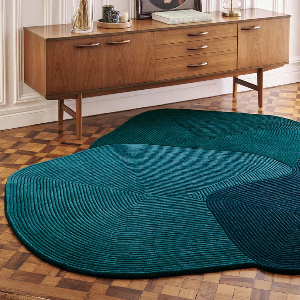Experience luxury and artistry with the Tumulus Rug from Toulemonde Bochart, hand-tufted with exceptional skill by artisans in Indian workshops. Created by renowned designer Samuel Accoceberry for Toulemonde Bochart, this bold rug features a pattern that showcases the weavers' mastery in shaping volumes and creating reliefs. Its three colorful petals demand attention and anchor any space, from dining rooms, to entryways. Highlights