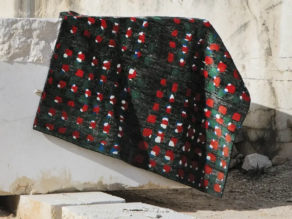 Tuo is a hand-knotted rug, 45% New Zealand wool, 45% jute and 10% cotton. Shaved rim finish in wool and jute, contours of the shapes carved by hand. Customizable color and size. Not suitable for outdoor use.Density, color, weft wool and jute threads beaten together and then shaped by skilled artisan hands to create effects of contrasting heights and tactile sensations.The hand-knotted rugs are produced with the ancient technique of manual knotting in which the knots are tightened by hand, one by one. The shape of the knotting, the type of knot and its thickness give the rug unique characteristics. The quality of the carpet increases proportionally to the number of knots of which it is composed. The hand-knotted rugs are works of the highest craftsmanship.