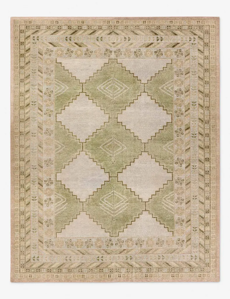 Make a statement underfoot with the bold tones and striking design of this hand-knotted rug. Its intricate geometric patterns offer an updated take on vintage styles, bringing a modern classic to your curation. We love this wool rug for its sumptuous texture and heirloom quality.