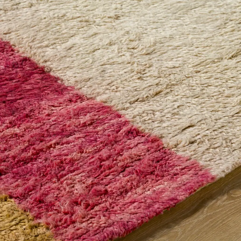 Expertly hand-tufted from wool in India, this piece promises to infuse your living space with an exotic and vibrant touch. It boasts a high pile that offers a luxurious underfoot feel while its intricate design adds visual appeal to any room. We recommend using it with a rug pad for optimal comfort and durability. When it comes to care, simply spot clean with a dry cloth. Add this handmade rug to your home today and transform your floor into an artistic display!