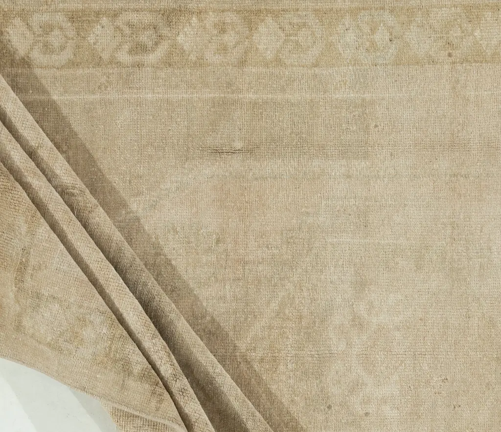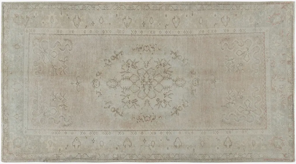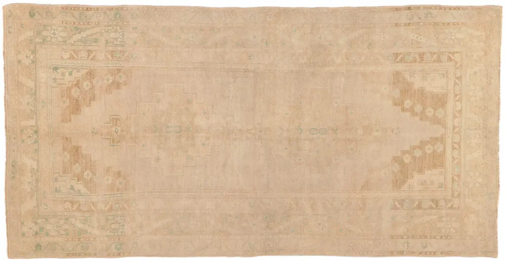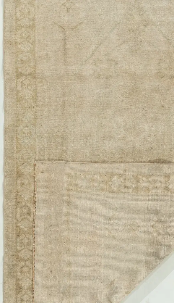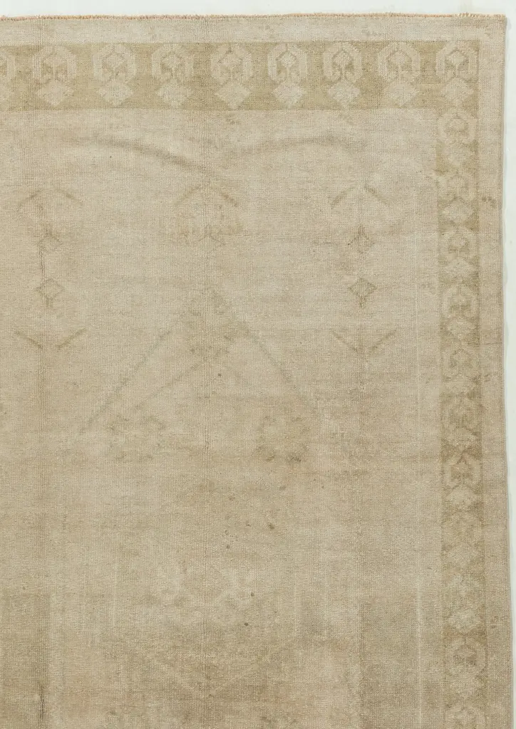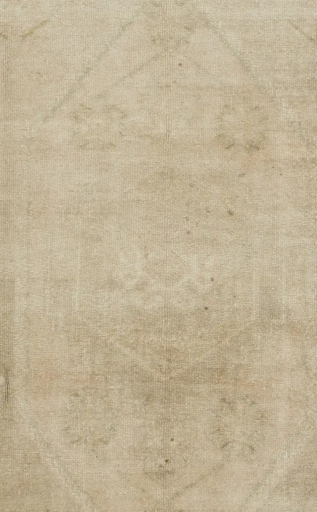 Character, tradition, pattern and palette converge in this gorgeous vintage hand knotted Turkish rug, woven in the small west-central Anatolian region. The rug-weaving is in west-central Anatolia, approximately 100 miles south of Istanbul. Colors: beige/ivory/light olive.