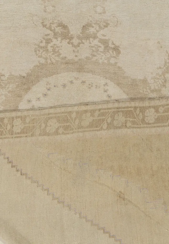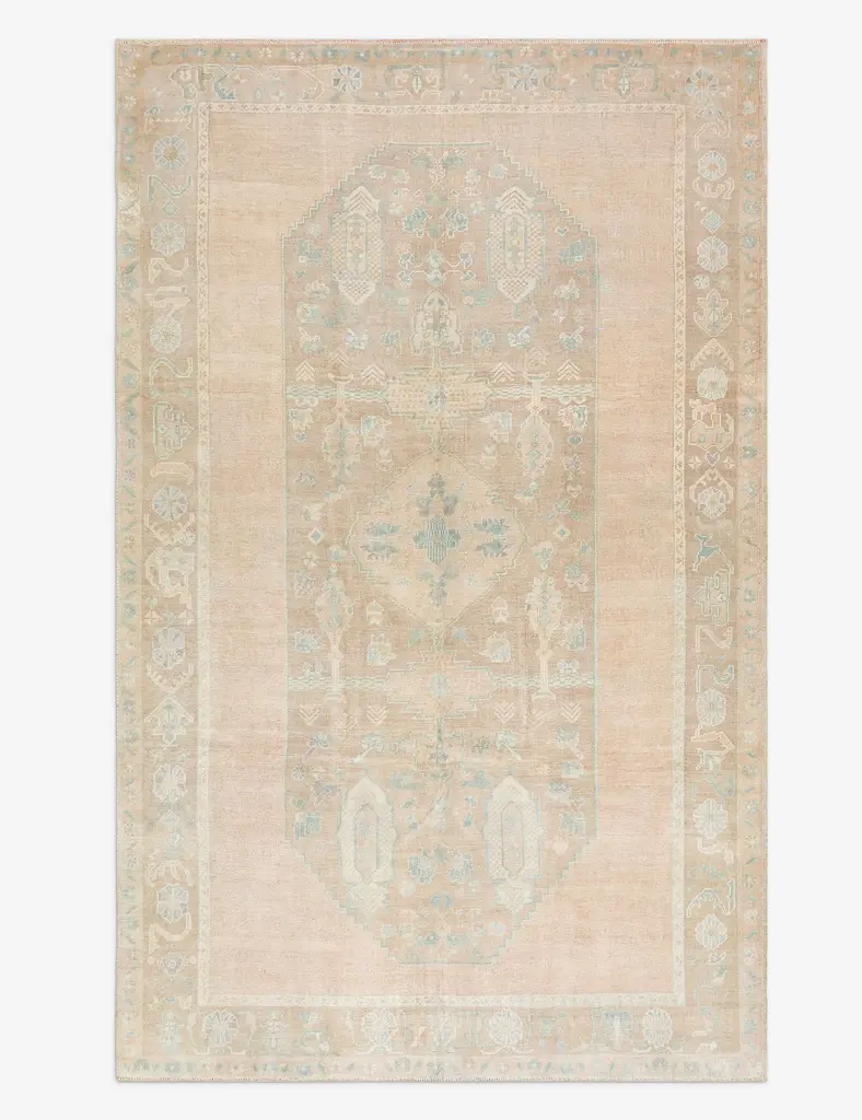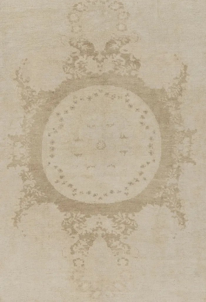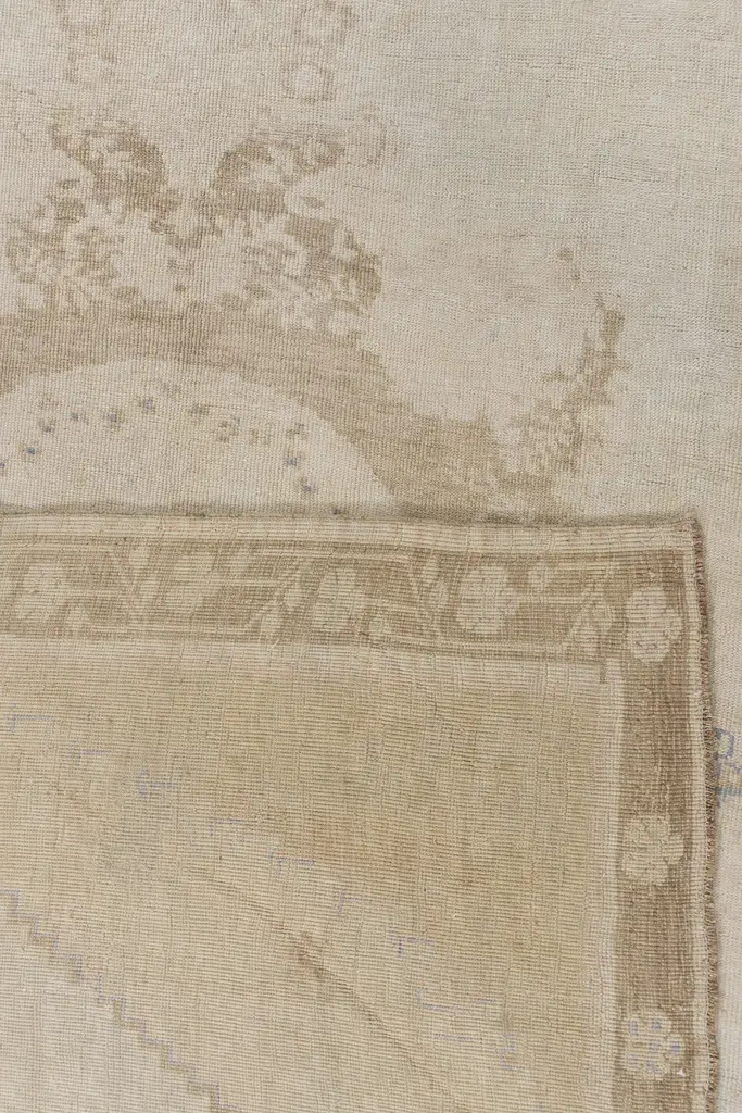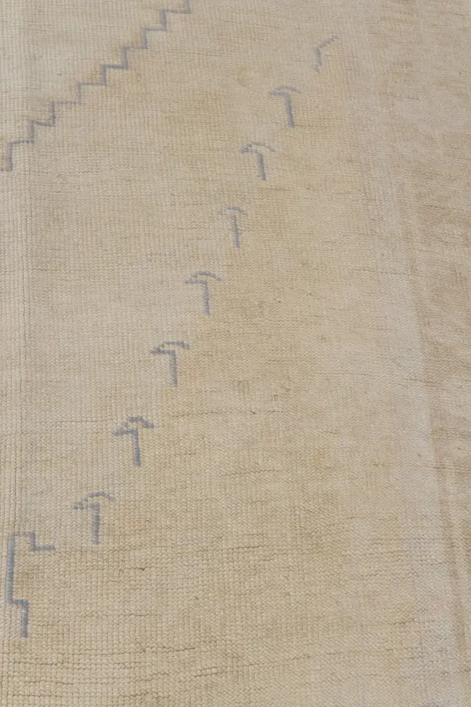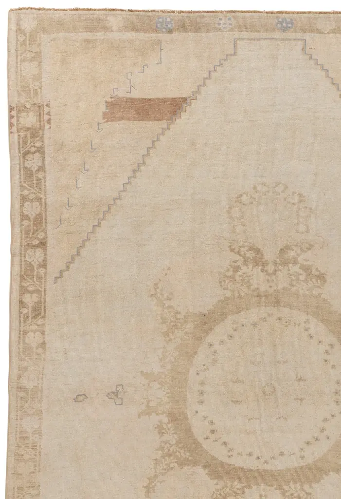 From Kars in the North East of Turkey these vintage hand knotted light colored rugs are similar to Oushaks and are among the most popular oriental carpets, known for the high quality of their wool their beautiful patterns and warm colors. These designer favorites will complement any interior. Colors: light beige/taupe/pale apricot/blue accents.