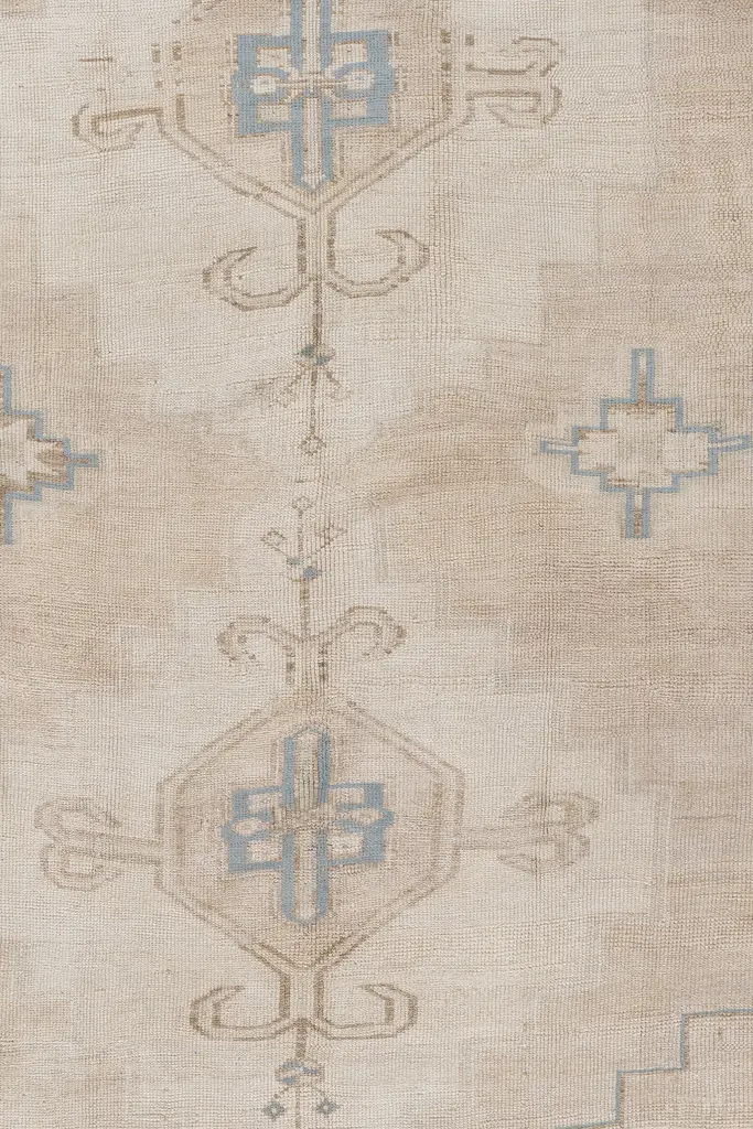 From Kars in the North East of Turkey these vintage hand knotted light colored rugs are similar to Oushaks and are among the most popular oriental carpets, known for the high quality of their wool their beautiful patterns and warm colors. These designer favorites will complement any interior. Colors: Pink/blue/tan