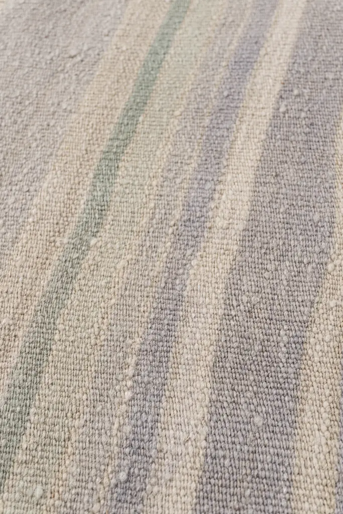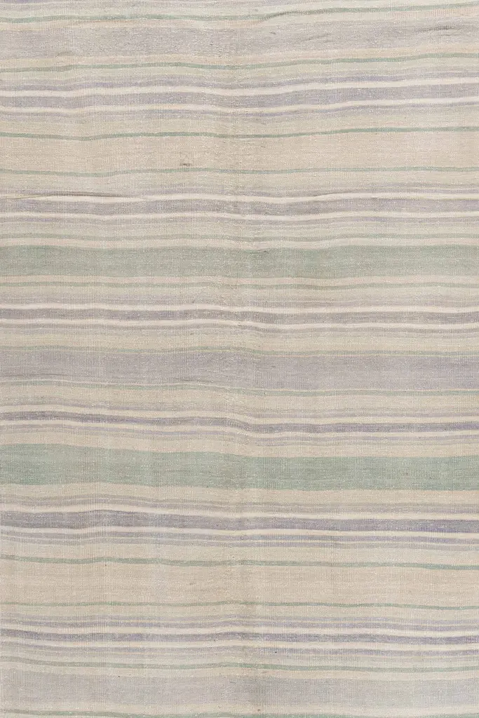 This vintage Turkish flat weave Kilim is hand-woven. The simplicity and boldness of this piece can also give a contemporary feel and is able to look at home in both a modern and traditional setting. The geometric design in soft colors is typical of the style woven in Turkey during this period. Colors: beige/cream/blues/green.