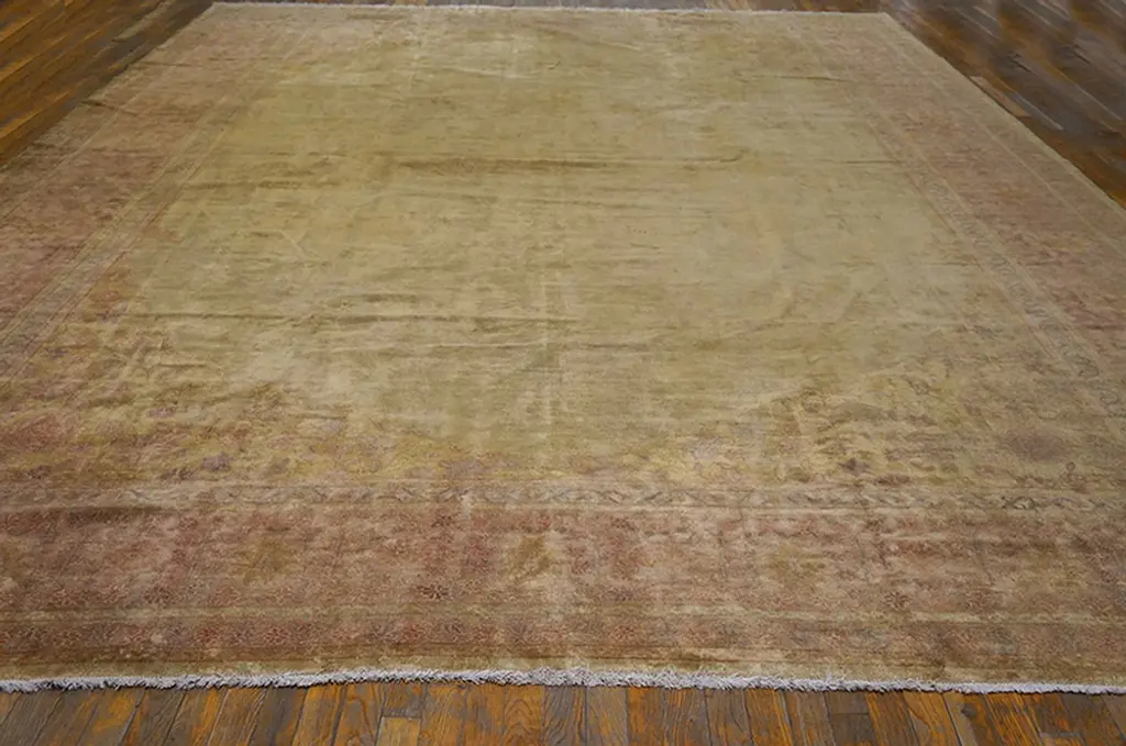 Turkish Oushak Rug 16'5" x 11'7" hand knotted antique wool piece sand tone field