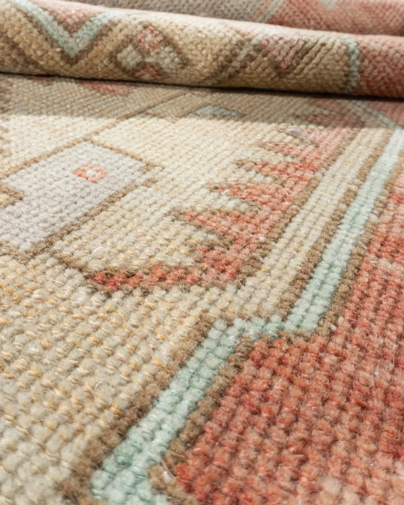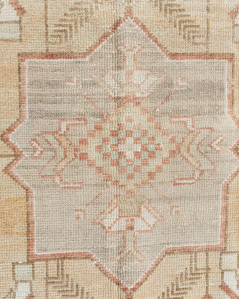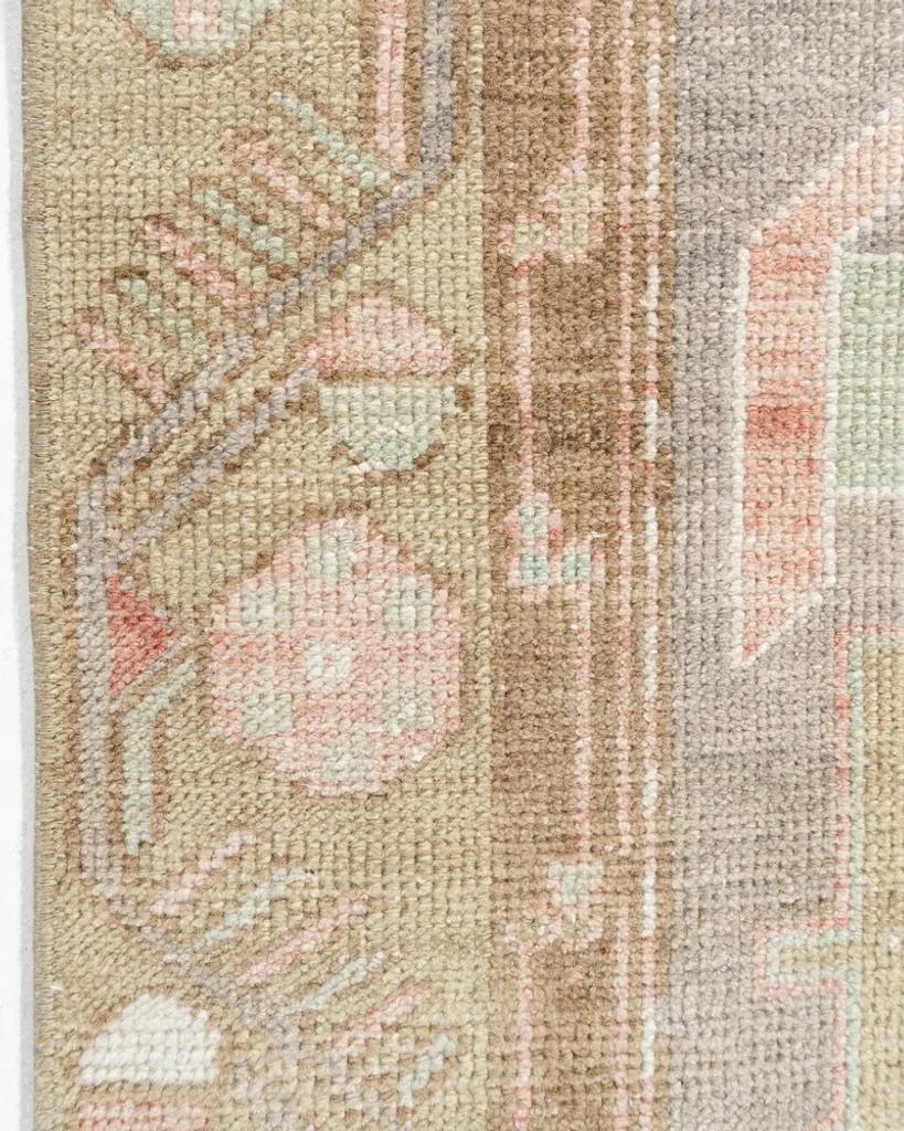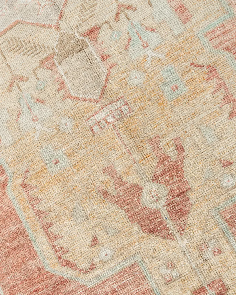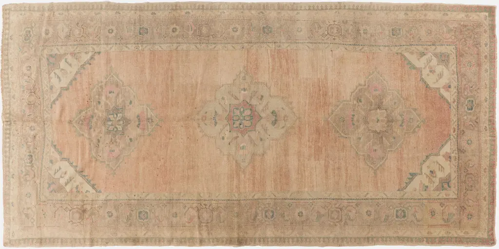 The luxurious quality of the wool (for which Oushaks have always been famous) contributed to the vibrancy of the colors. Unlike most Turkish rugs, Oushak rugs were heavily influenced by Persian design. Many depictions of ancient oriental carpets in old western paintings appear to be styles designed and woven in Oushak. Many people look at Oushak rugs for their history and ancient value, but even in today's world of carpet weaving, Colors: light brick/greens/apricot/grays/taupe.