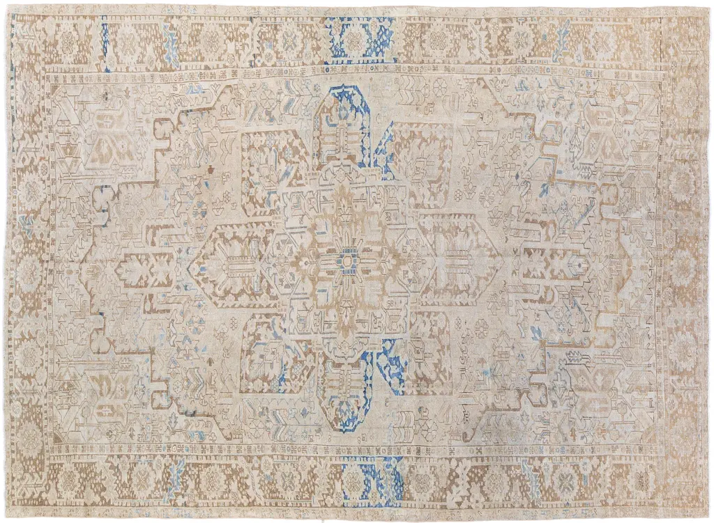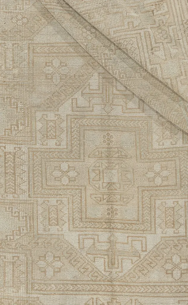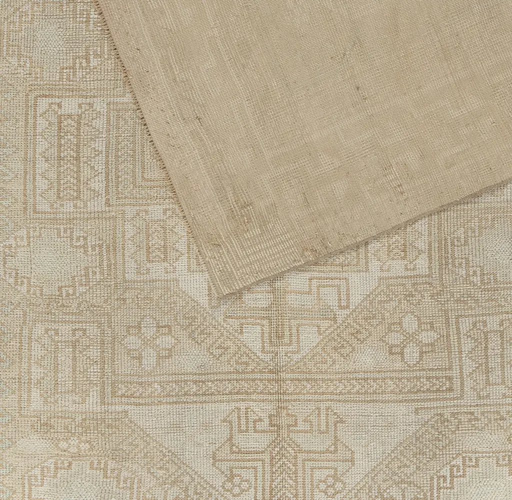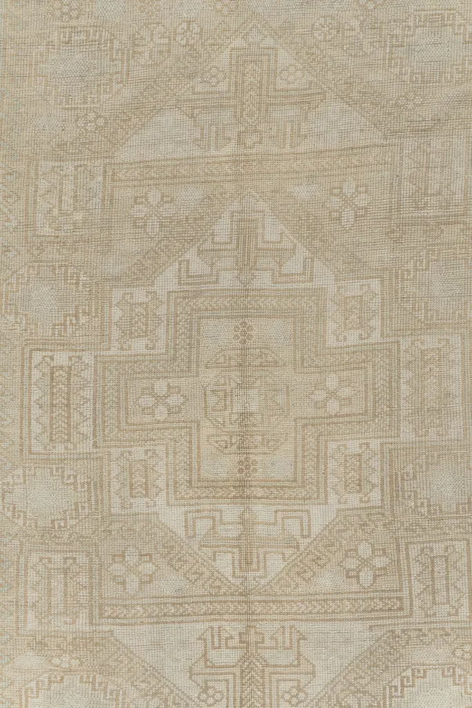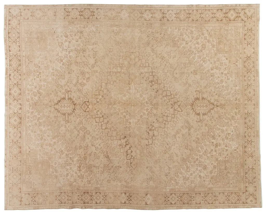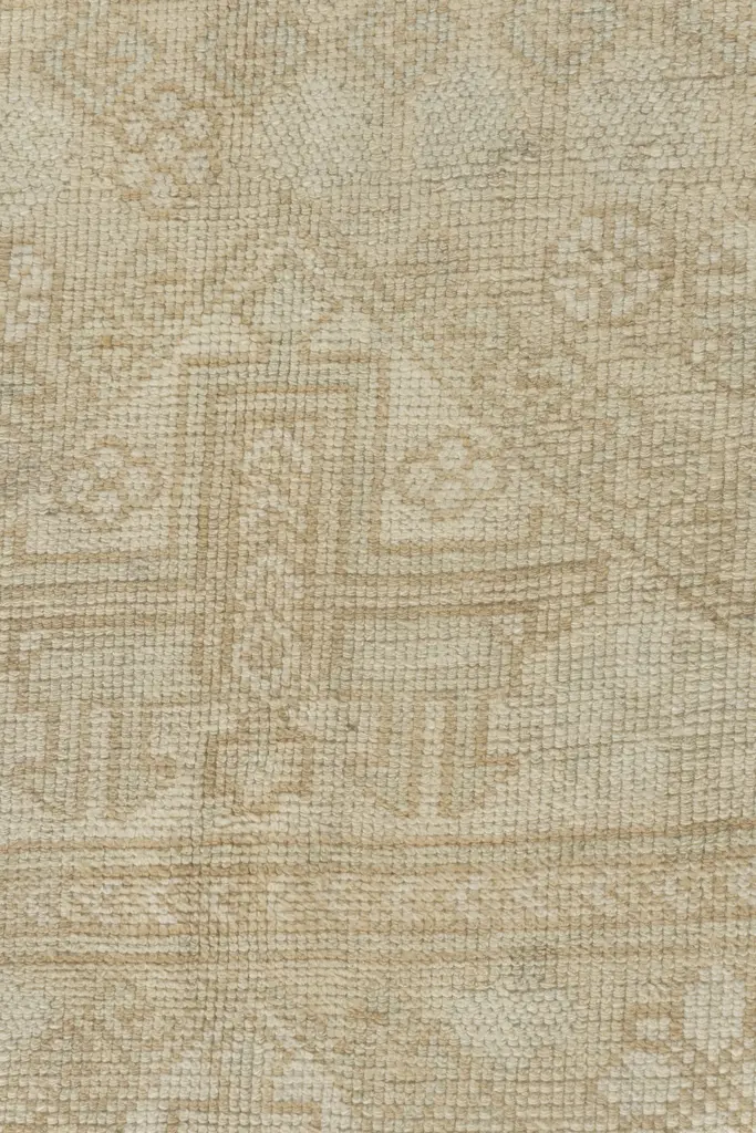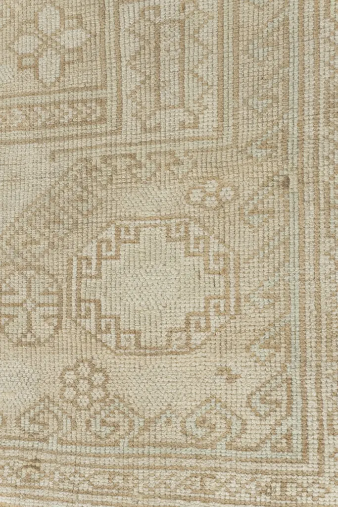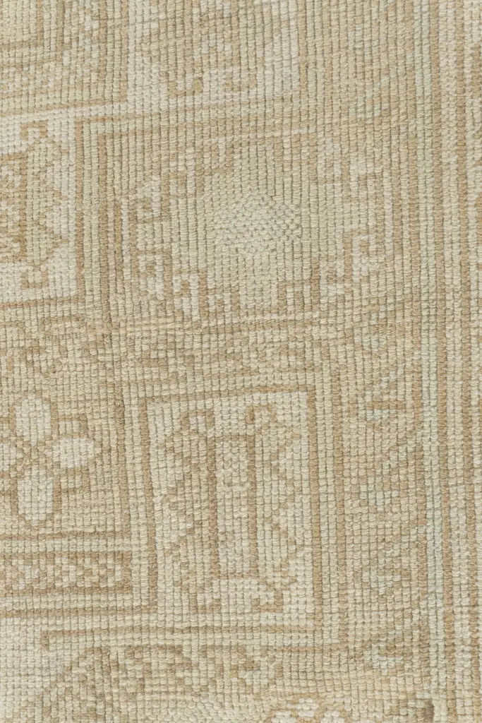 Oushak's are known for their soft palettes combined with eccentric drawing. Oushak in western Turkey has the longest continuous rug weaving history, stretching back at least to the mid-fifteenth century. It has always been oriented commercially, supplying rugs and carpets, from scatters up to enormous mansion sizes, to both the Turkish/Ottoman domestic markets and to exports into Britain, and America. Colors: ivory/beige/taupe/pale tan.